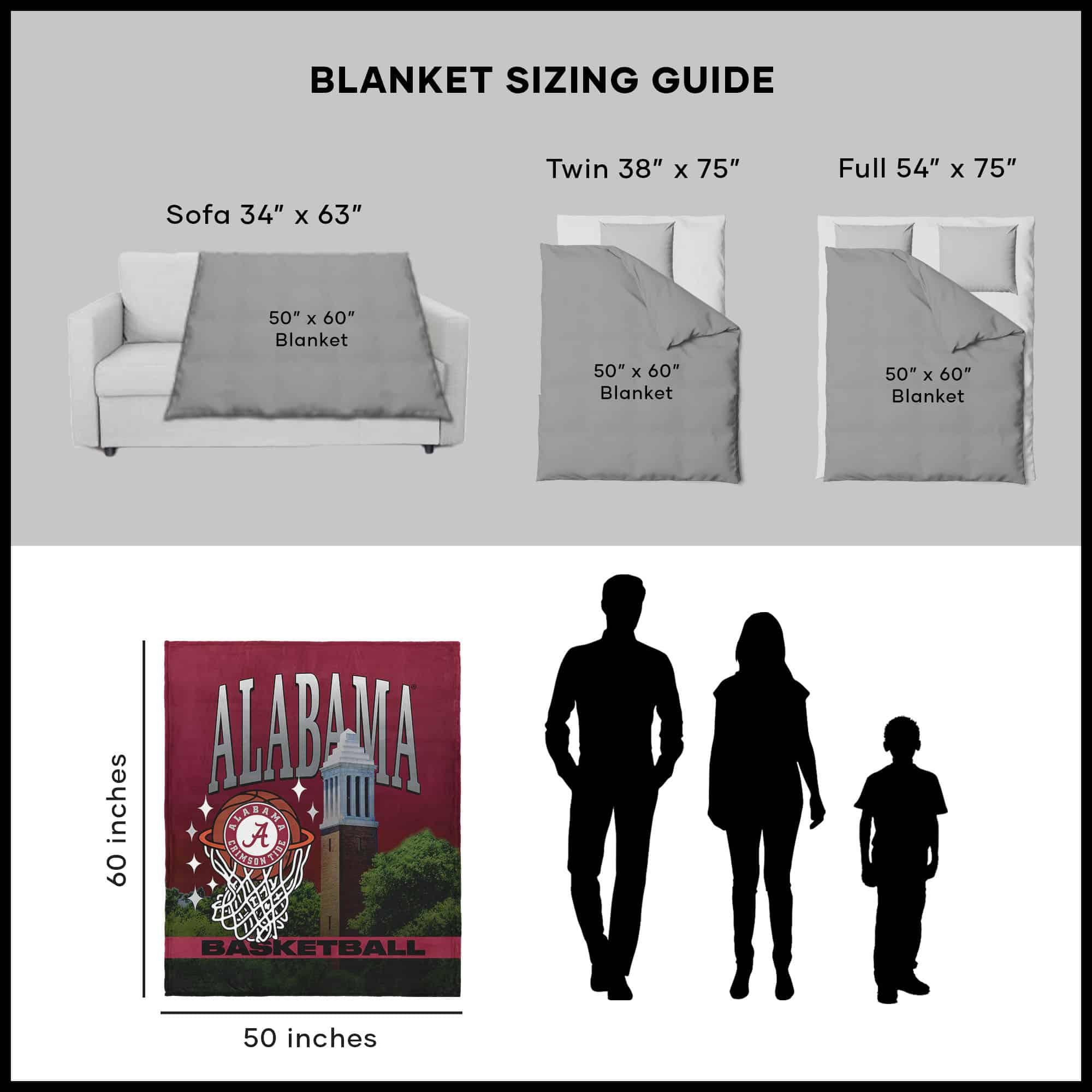 Celebrate your Crimson Tide pride with the Alabama ¡°BBall Love¡± Silk Touch Throw. This vibrant blanket showcases your school¡¯s name, Denny Chimes Tower, logo, basketball, and hoop in a bold and eye-catching design. Made from luxurious silk touch fabric, this throw is as soft as a swooshing three-pointer. More than just a blanket; it¡¯s a statement of your unwavering support for one of college basketball¡¯s most iconic teams. Perfect for adding a touch of Alabama spirit to your living space.