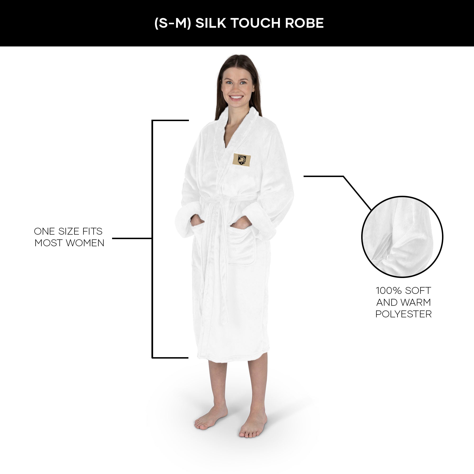 Army Black Knights NCAA White Out Silk Touch Robe Small/Medium