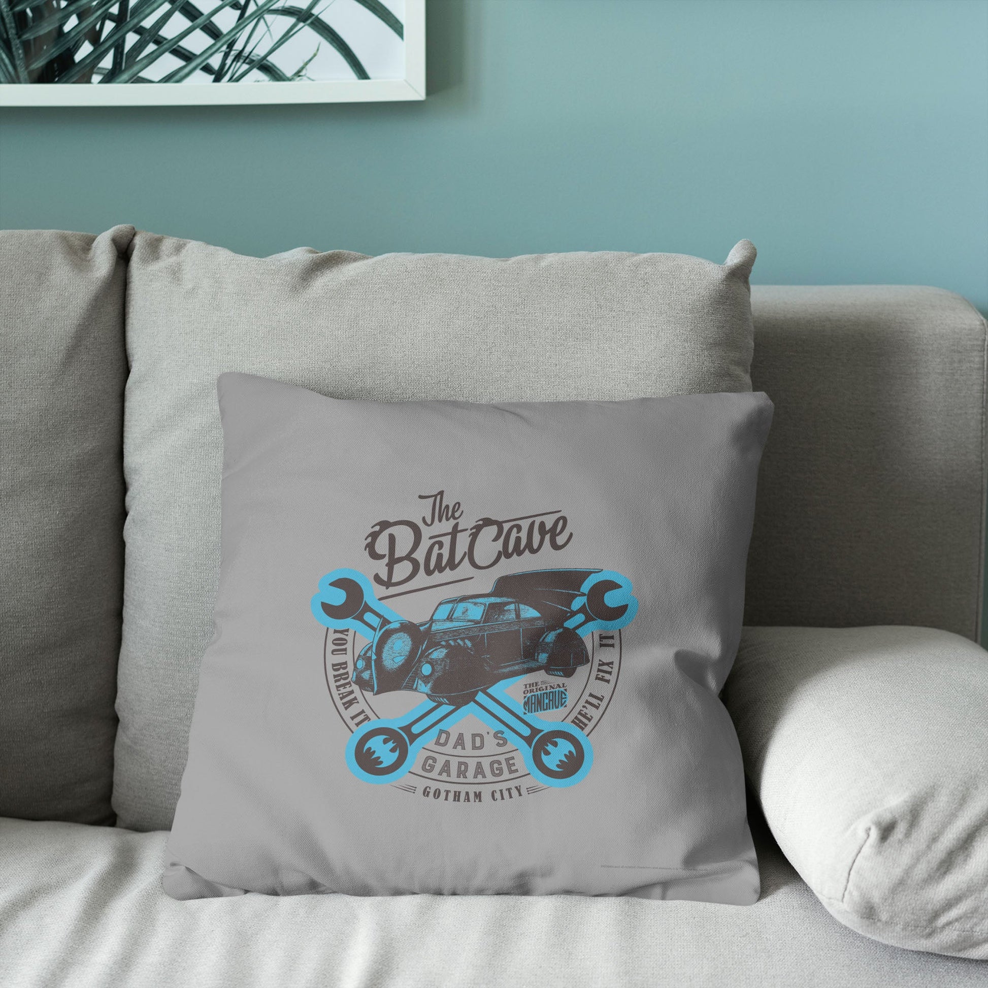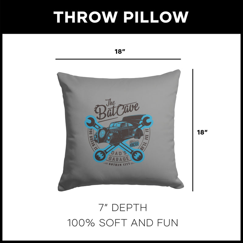 ? Featuring a vintage design with the iconic Batmobile and crossed wrenches, the pillow highlights the fun, DIY spirit of Batman¡¯s ¡°Dad¡¯s Garage¡± in Gotham City.