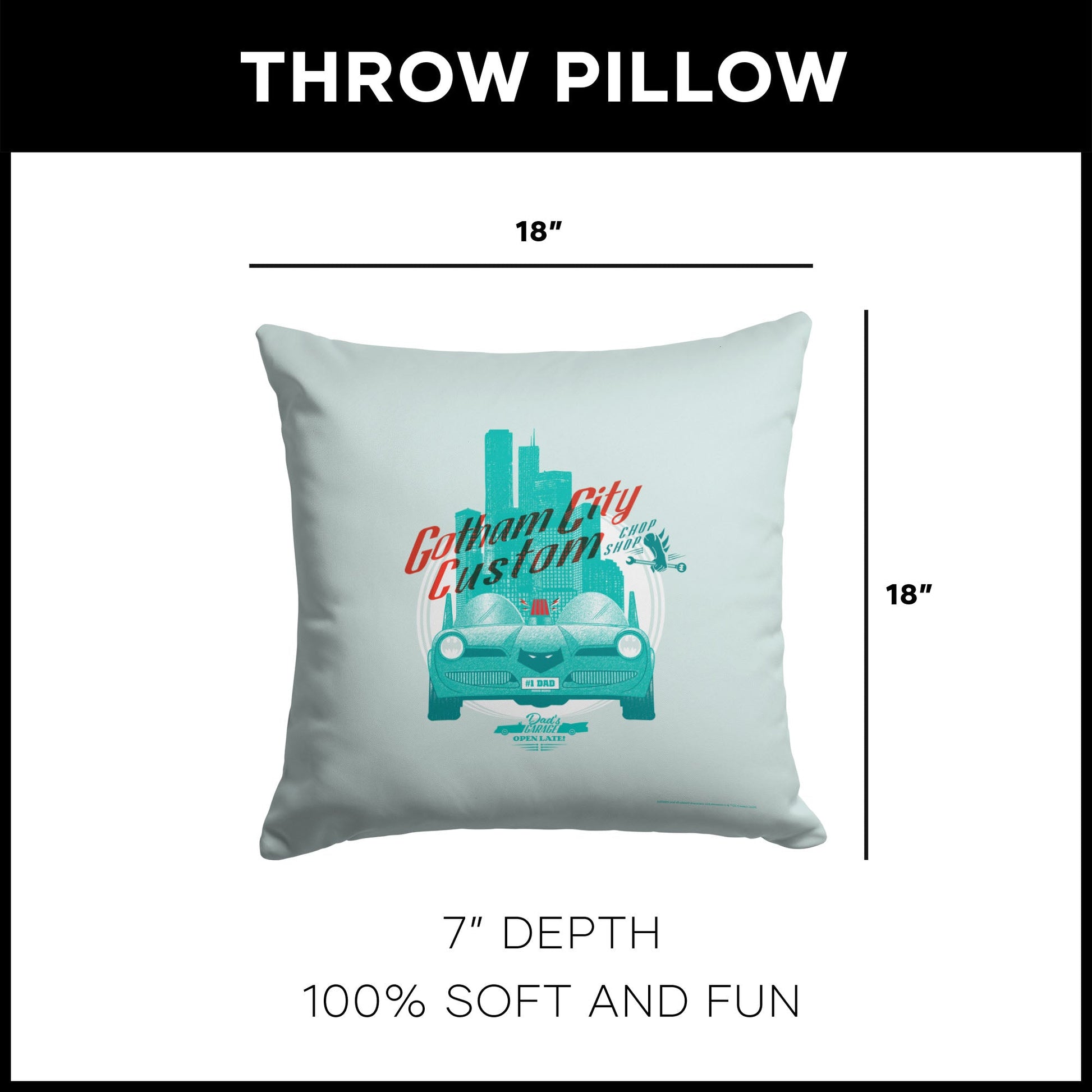 Bring Gotham¡¯s signature style into your home with the Warner Bros. Batman ¡°Gotham¡¯s Customs¡± Throw Pillow. Featuring a vintage-inspired design, this pillow celebrates the iconic Batmobile with a retro feel. It features bold graphics that showcase Gotham City¡¯s custom chop shop, and the ¡°Number 1 Dad¡± label makes it perfect for Batman fans who also double as the best mechanics in town. Crafted for comfort and durability, this pillow is a fantastic addition to any living space. The unique design captures the spirit of Gotham with a playful yet stylish nod to Batman¡¯s world, combining modern city life with classic hero elements. Whether it¡¯s on a couch, in a man cave, or in a kid¡¯s room, it¡¯s sure to add character and style wherever it¡¯s placed. A great gift for fans of the Dark Knight or anyone who appreciates quirky decor, this pillow merges function and fun in a way that only Batman can. Show off your Gotham pride or surprise a loved one with a superhero-themed touch for their home. Whether you¡¯re a car enthusiast or a Batman collector, the ¡°Gotham¡¯s Customs¡± Throw Pillow is the perfect tribute to the Batcave.