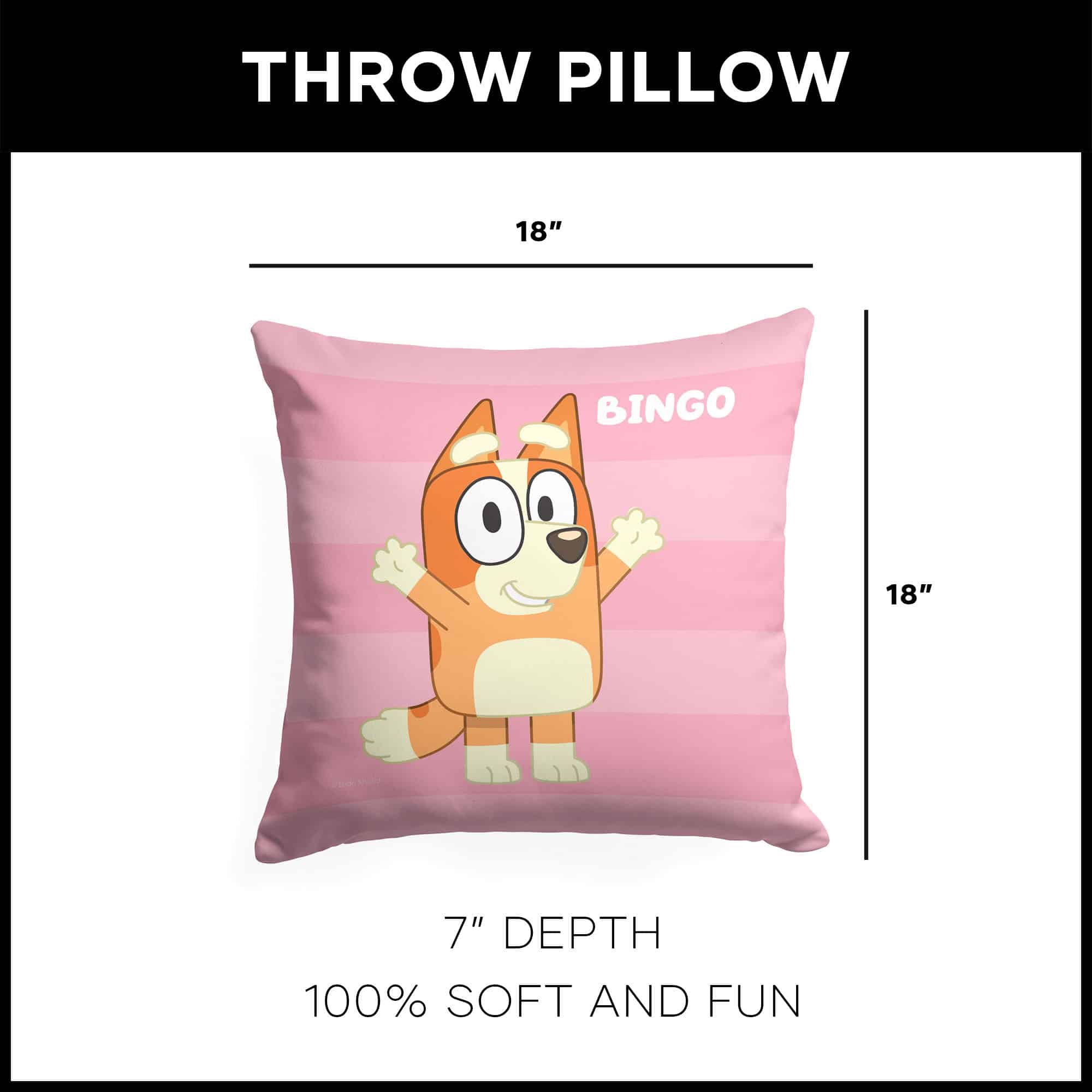 Embark on countless adventures with our Soft and Comfortable Bluey "Roll Call: Bingo" Throw Pillow. Crafted from 100% polyester for a touch of magic in every cuddle. Elevate your child's space with the warmth and whimsy of Bluey, turning ordinary moments into extraordinary adventures, where the magic of playtime and the comfort of a good friend come together.