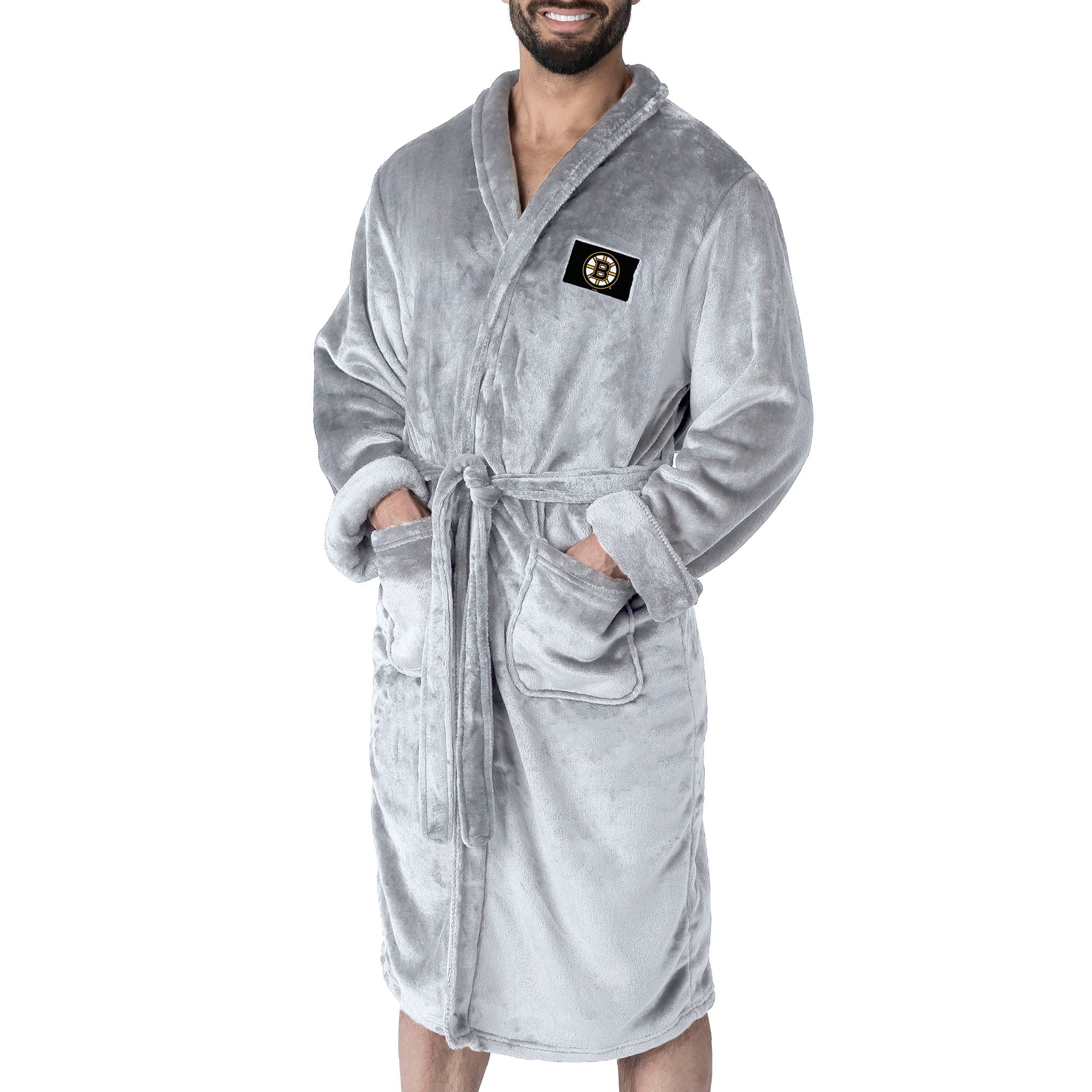 Wrap yourself in team pride with this NHL Silk Touch Bath Robe, featuring your favorite team¡¯s logo proudly displayed on the left chest. Made from silky soft fabric, it¡¯s the perfect way to stay comfortable while showing off your hockey loyalty. This robe comes with a silk touch tie belt and two belt loops on both sides, offering an adjustable and secure fit. With two front patch pockets, you¡¯ll have space to hold small essentials while lounging around the house. Whether you're winding down after a big win or just relaxing, this robe keeps you cozy while proudly representing your favorite NHL team.