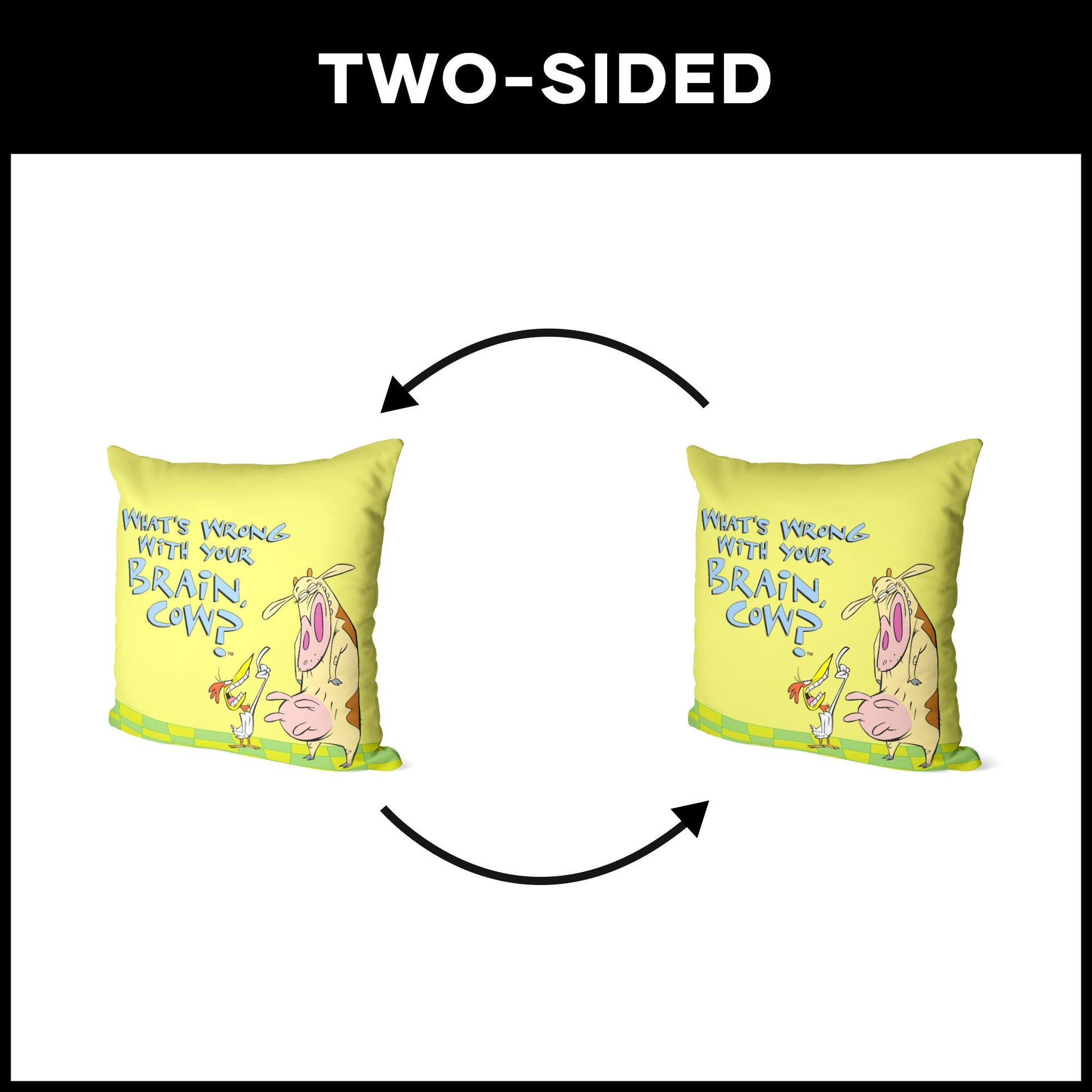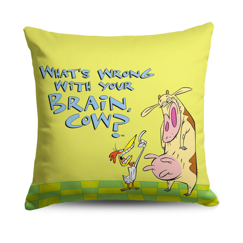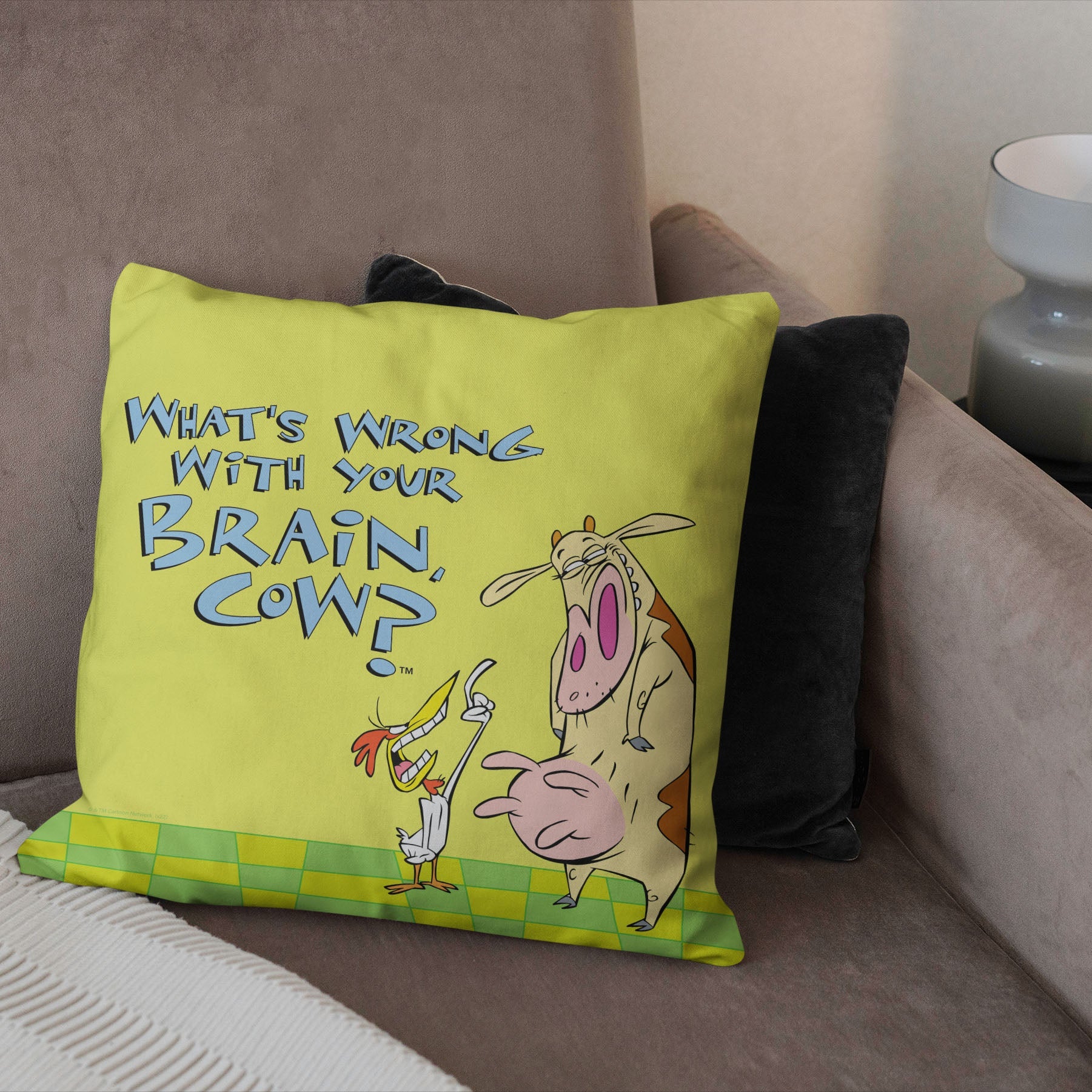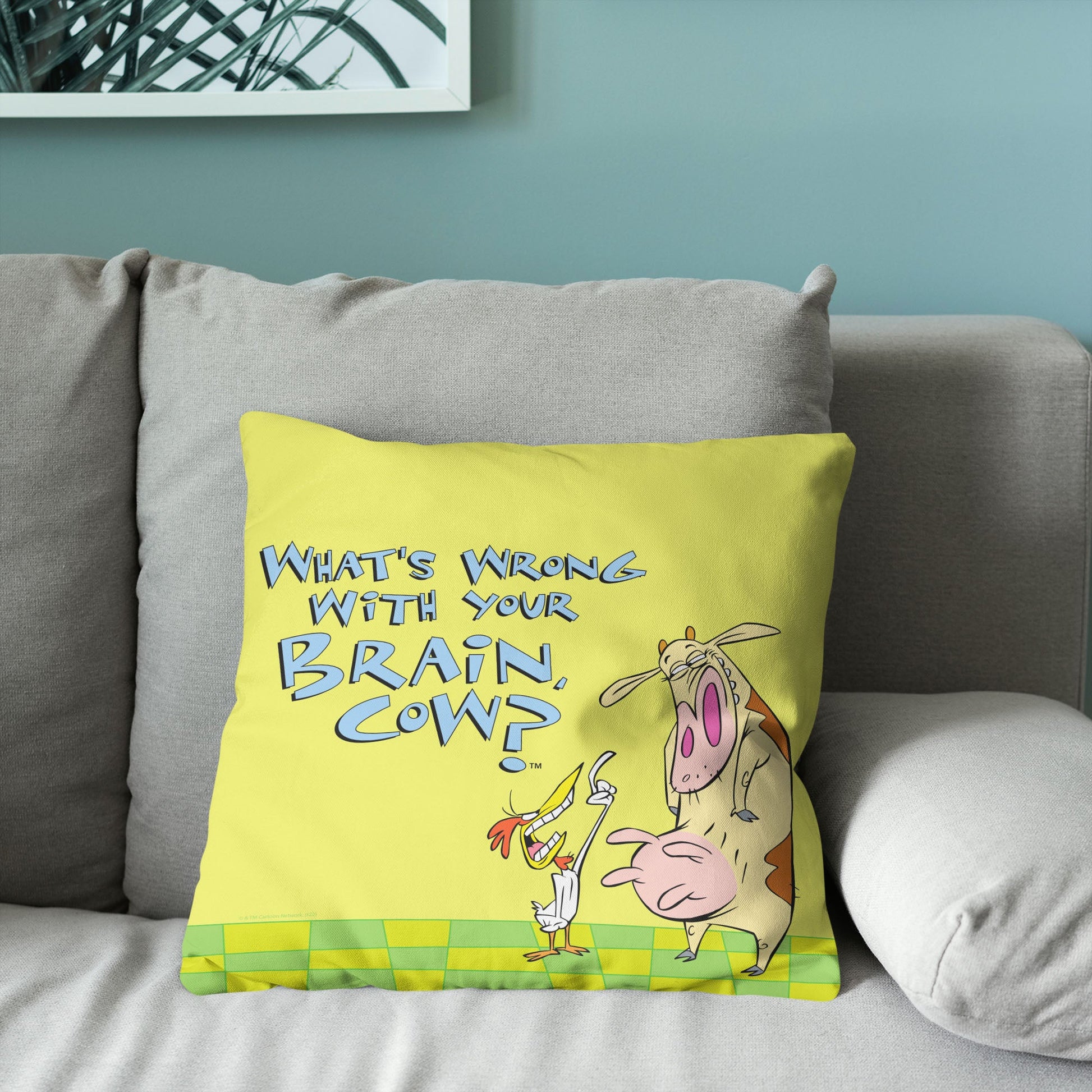 Cartoon Network Cow And Chicken Whats Wrong With Your Brain Throw Pillow 18x18 Inches