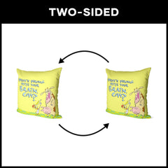 Snuggle up in style with this Cartoon Network's Cow and Chicken "What's Wrong With Your Brain" soft and luxurious pillow. Measuring 18"W x 18"L, it's the perfect size to add an extra layer of coziness to your couch, bed, or any area in your home. Made with 100% polyester, this pillow is designed to be incredibly soft and comfortable.