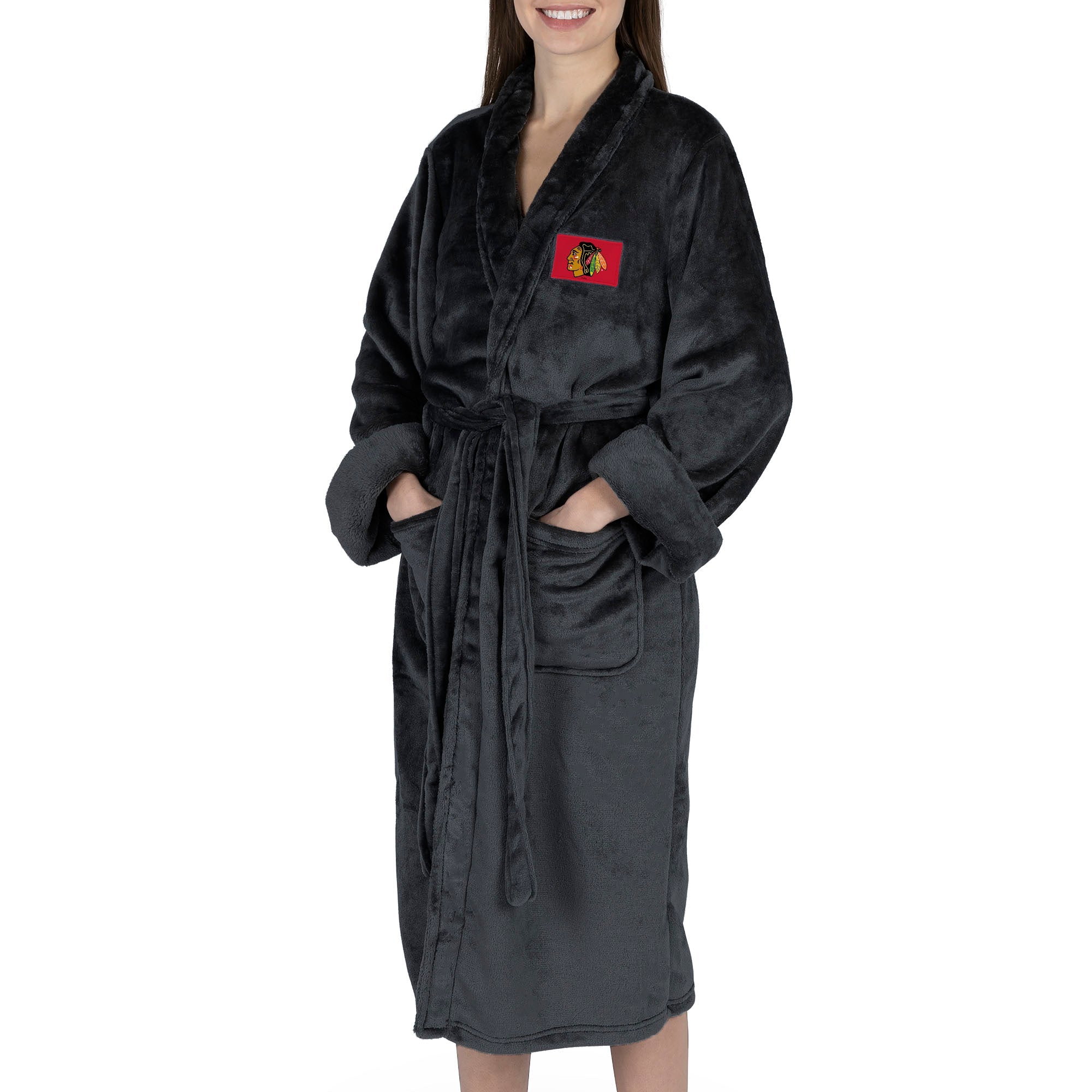 Wrap yourself in team pride with this NHL Silk Touch Bath Robe, featuring your favorite team¡¯s logo proudly displayed on the left chest. Made from silky soft fabric, it¡¯s the perfect way to stay comfortable while showing off your hockey loyalty. This robe comes with a silk touch tie belt and two belt loops on both sides, offering an adjustable and secure fit. With two front patch pockets, you¡¯ll have space to hold small essentials while lounging around the house. Whether you're winding down after a big win or just relaxing, this robe keeps you cozy while proudly representing your favorite NHL team.
