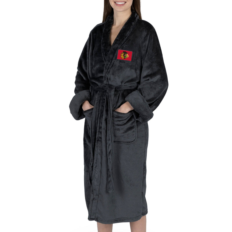 Chicago Blackhawks NHL Black Snipe S/M Silk Touch Bathrobe 23X41 Inches