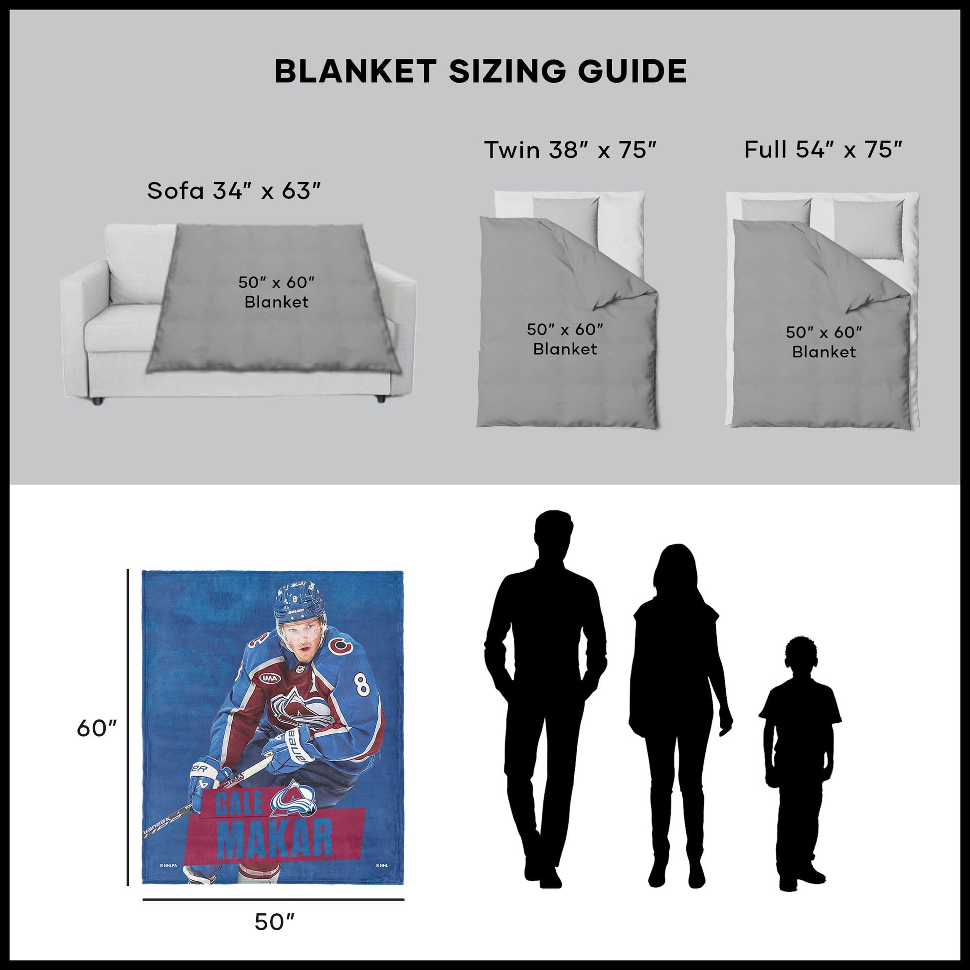 Colorado Avalanche Cale Makar NHL Silk Touch Sherpa Throw Blanket 50X60 Inches