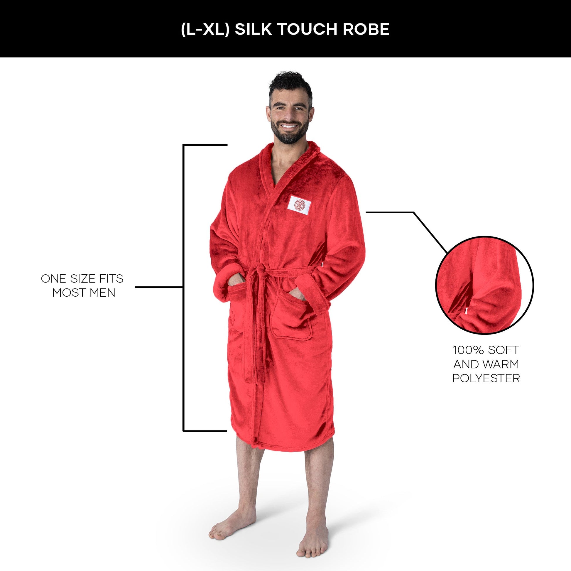 Wrap yourself in comfort and team pride with the NCAA ¡°Cornell University¡± Silk Touch Robe. Featuring your team¡¯s logo, this robe offers a luxurious, soft feel that¡¯s perfect for lounging at home or after a long day. Whether you¡¯re enjoying game day at home or relaxing in your dorm, it¡¯s a great way to show your school spirit in total comfort. Crafted from silky-soft fabric, this robe provides warmth and coziness while still feeling light and breathable. Its adjustable tie belt and two front pockets add both style and functionality, making it perfect for all-day wear. The bold team logo on the chest ensures that your school pride is always front and center. Ideal for game days, cozy nights, or casual lounging, the NCAA Silk Touch Robe combines comfort with school spirit. Whether you¡¯re wrapping up after a shower or gearing up for the next game, this robe keeps you feeling comfortable while showcasing your team loyalty.