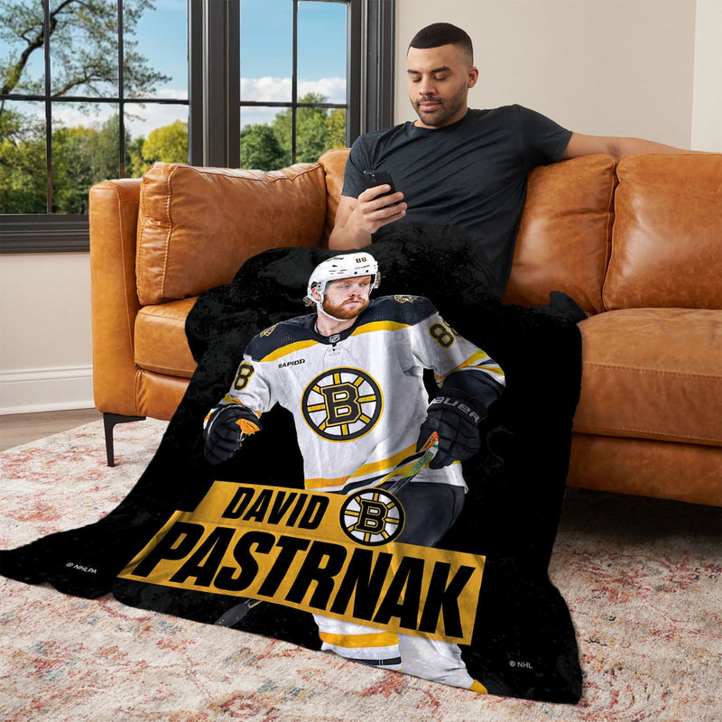 NHL Boston Bruins David Pastrnak Player Silk Touch Throw Blanket 50x60 Inches