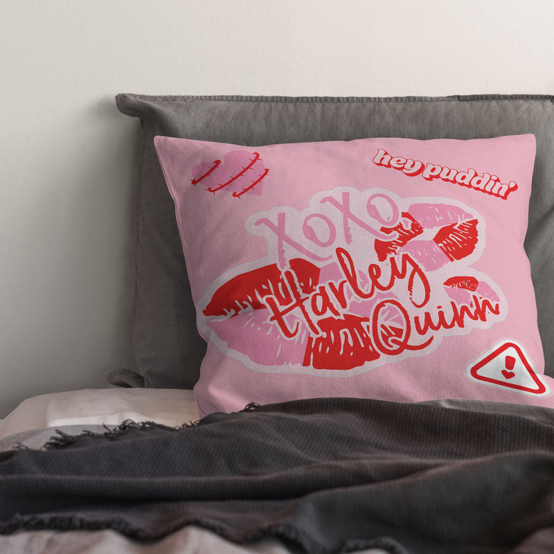 Unleash your inner superhero with the Warner Bros. DC ¡°Love Harley¡± Pillow, the ultimate blend of comfort and style for fans of the iconic DC universe. This soft and snuggly pillow boasts boasts the same dynamic design on both sides, making it a double delight for fans. Perfect for movie nights, reading marathons, or simply lounging with flair.