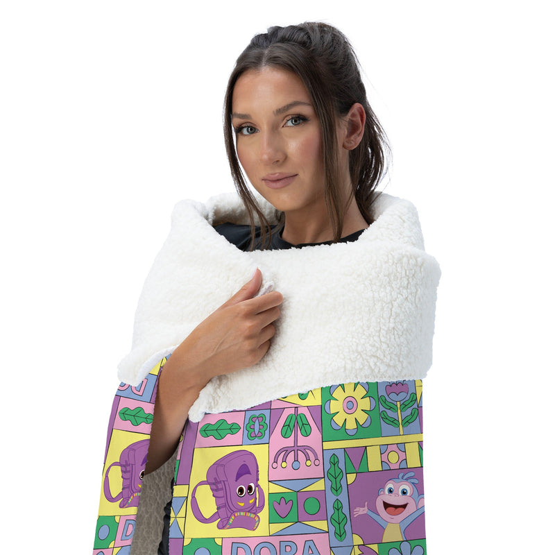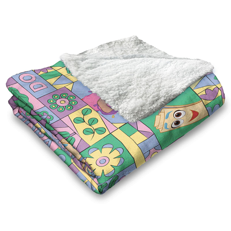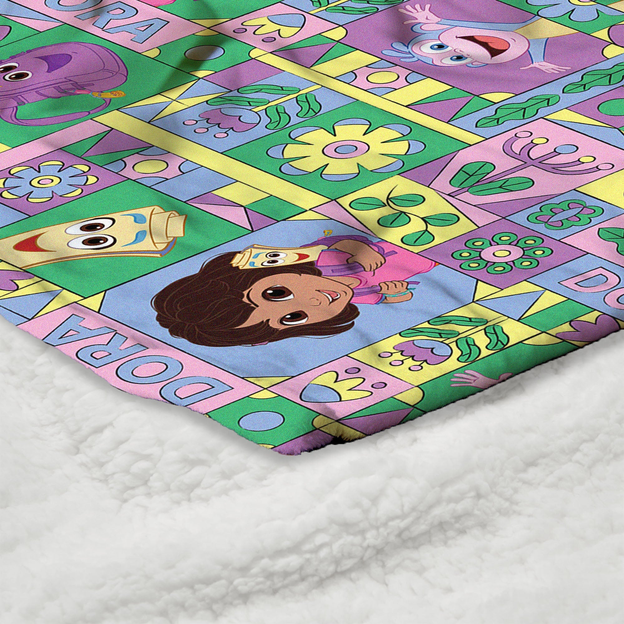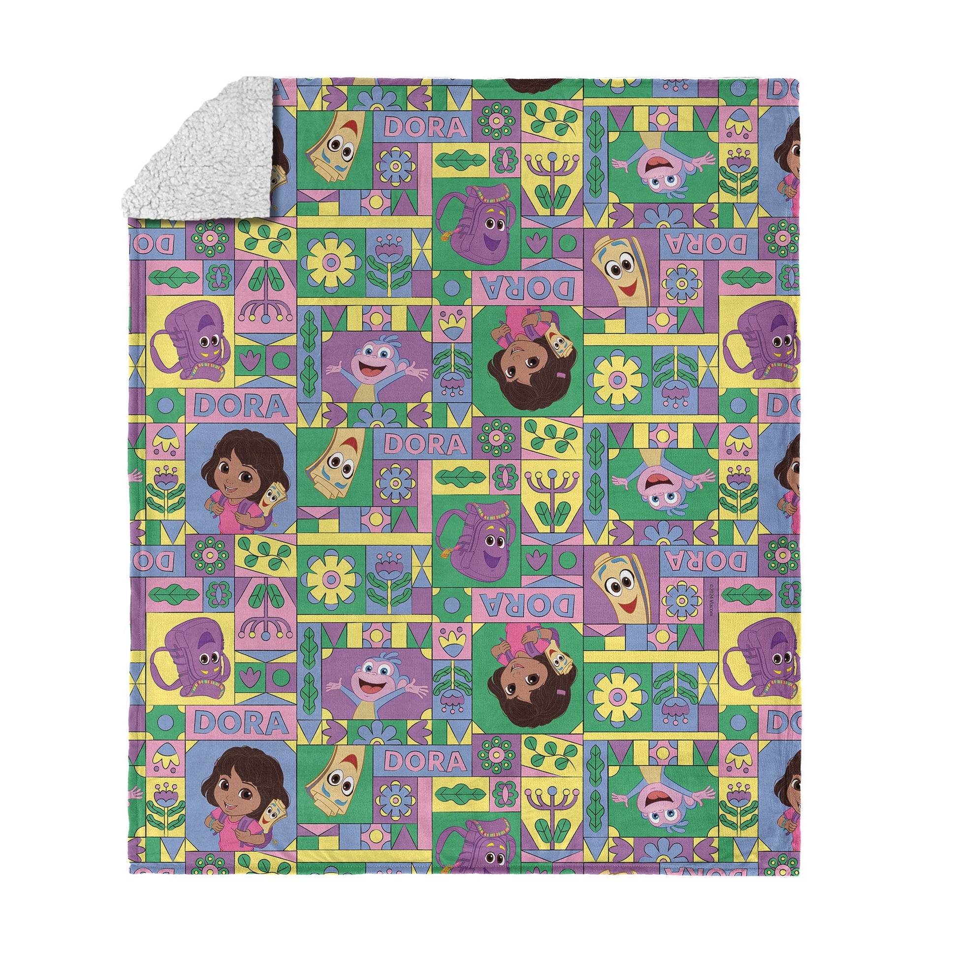 Embark on an adventure with the Nickelodeon Dora the Explorer "Dora and Friends Collage" Silk Touch Sherpa Throw Blanket. Featuring Dora, Boots, Backpack, and Map, this lively design is filled with geometric patterns, floral accents, and nature-inspired elements. A vibrant mix of pink, green, purple, and yellow brings playful energy to any space. Made from ultra-soft silk touch fabric, this lightweight yet cozy blanket is perfect for snuggling up, decorating a room, or bringing along on exciting journeys. The fade-resistant print keeps the colors bold, while durable stitching ensures lasting comfort and durability. A perfect addition for any young explorer, this throw brings warmth, fun, and adventure to bedtime, playtime, or relaxation. Whether used for cozying up or brightening up a space, it¡¯s a cheerful way to celebrate the spirit of Dora and her friends