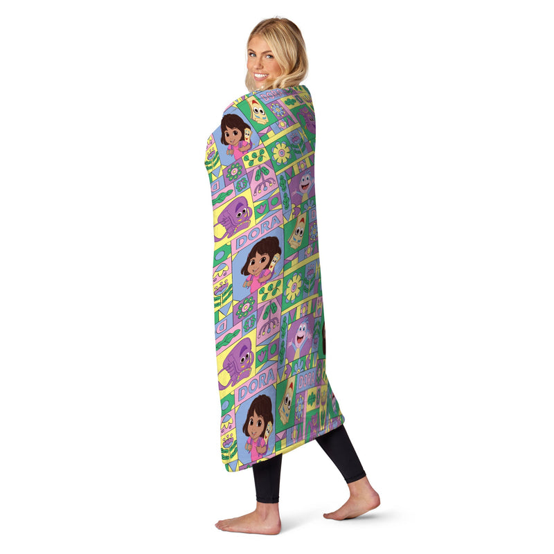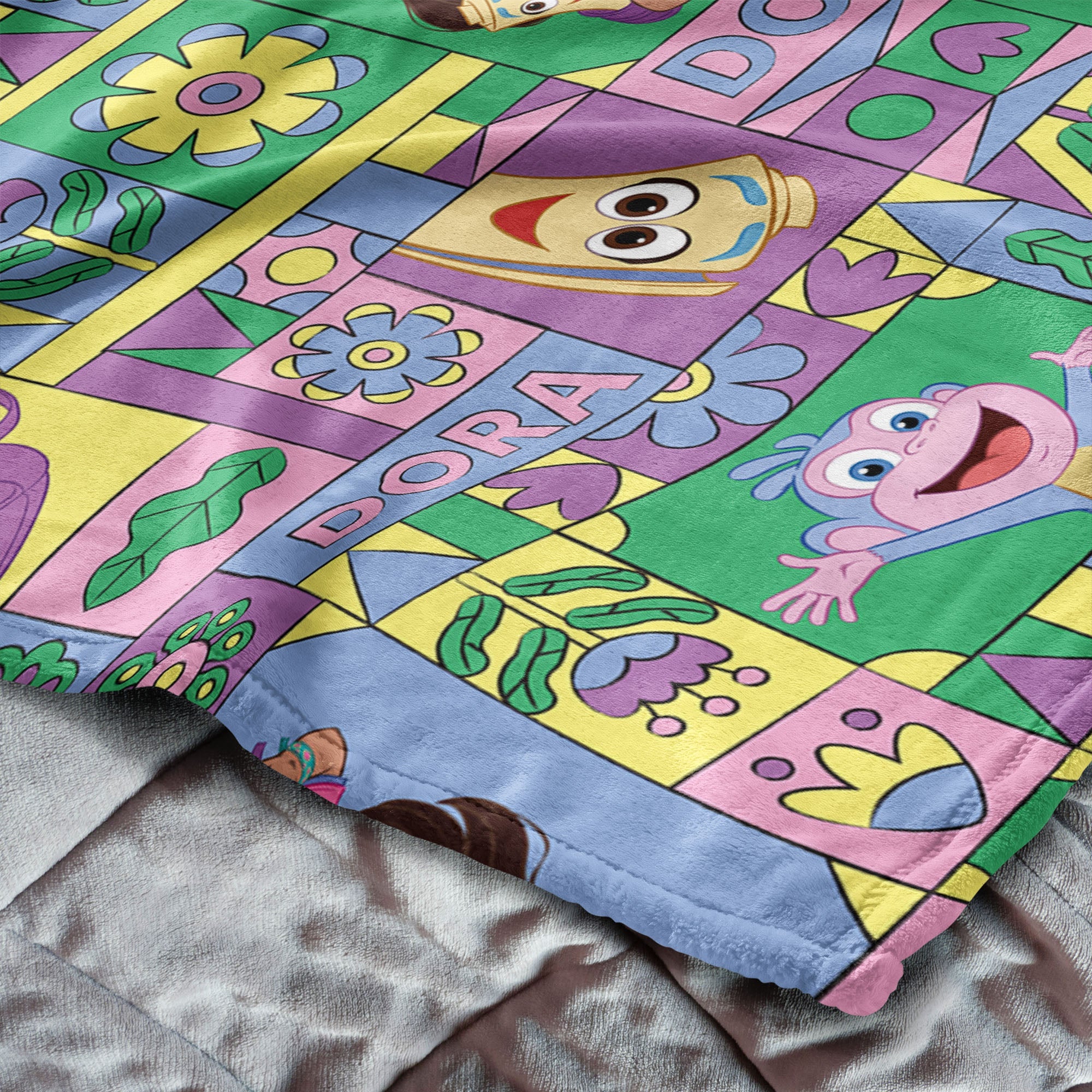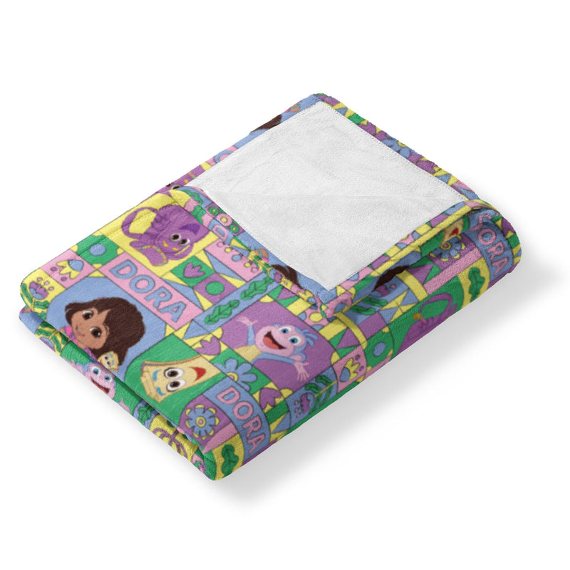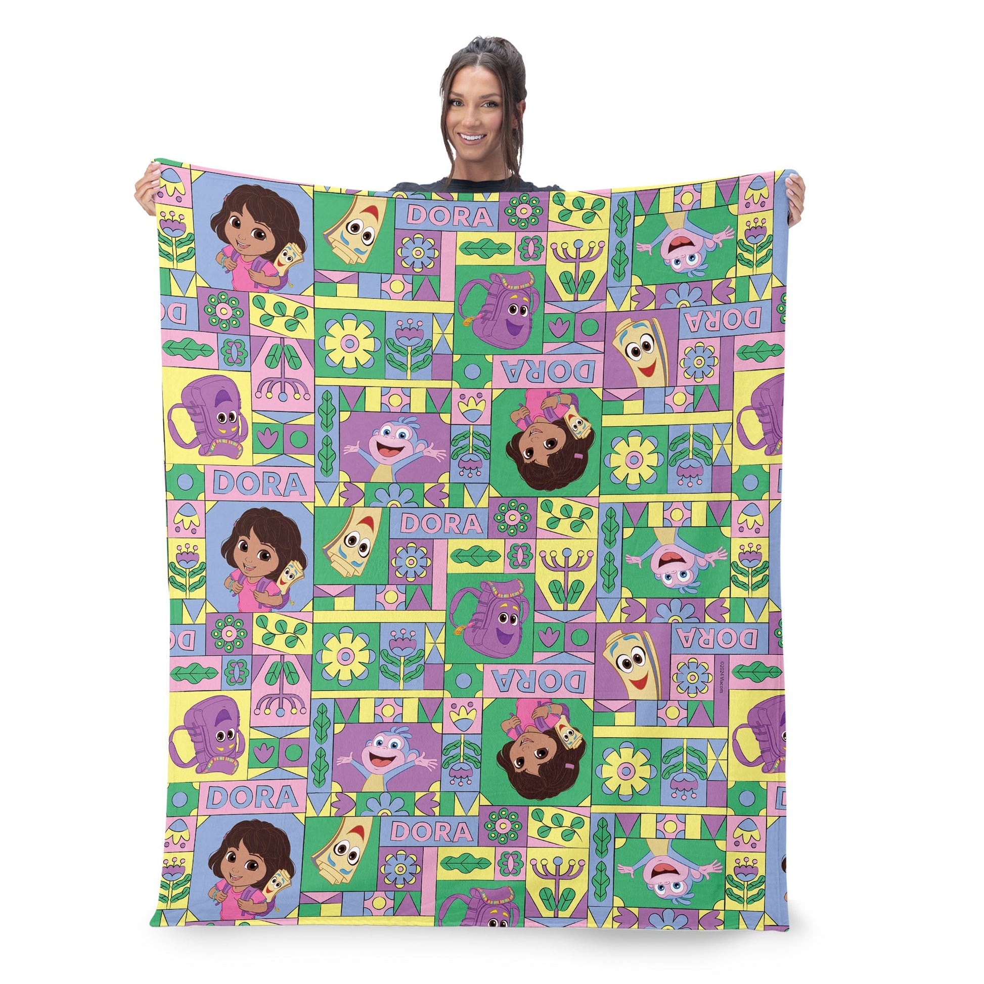 Embark on an adventure with the Nickelodeon Dora the Explorer "Dora and Friends Collage" Silk Touch Throw Blanket. Featuring Dora, Boots, Backpack, and Map, this lively design is filled with geometric patterns, floral accents, and nature-inspired elements. A vibrant mix of pink, green, purple, and yellow brings playful energy to any space. Made from ultra-soft silk touch fabric, this lightweight yet cozy blanket is perfect for snuggling up, decorating a room, or bringing along on exciting journeys. The fade-resistant print keeps the colors bold, while durable stitching ensures lasting comfort and durability. A perfect addition for any young explorer, this throw brings warmth, fun, and adventure to bedtime, playtime, or relaxation. Whether used for cozying up or brightening up a space, it¡¯s a cheerful way to celebrate the spirit of Dora and her friends