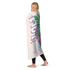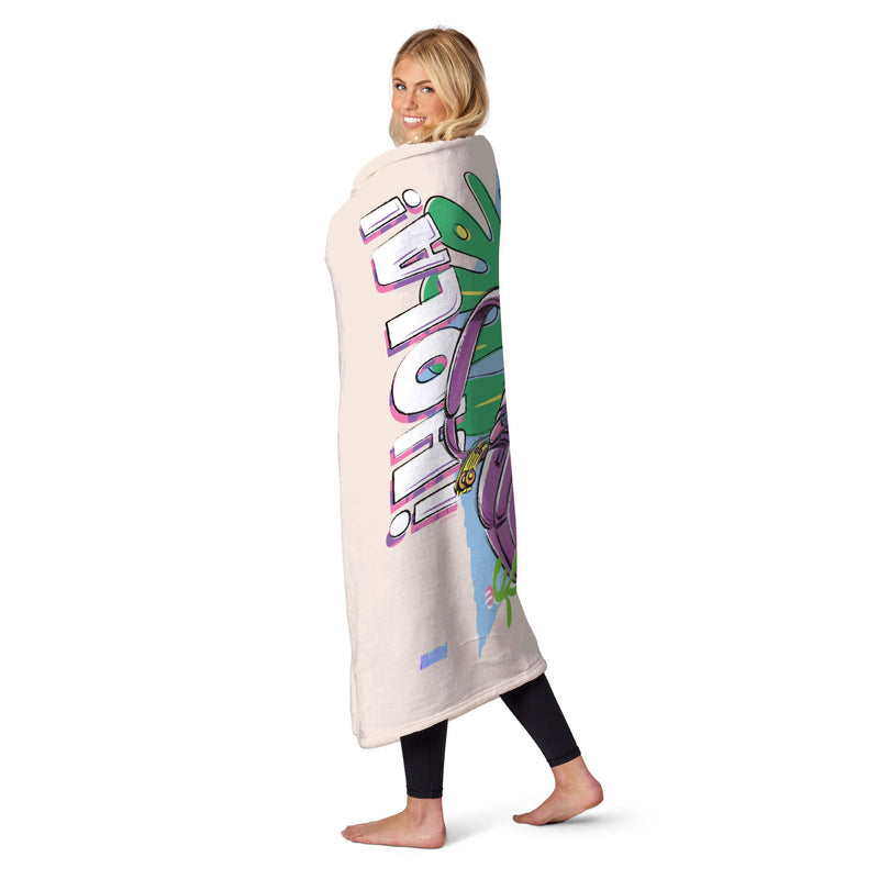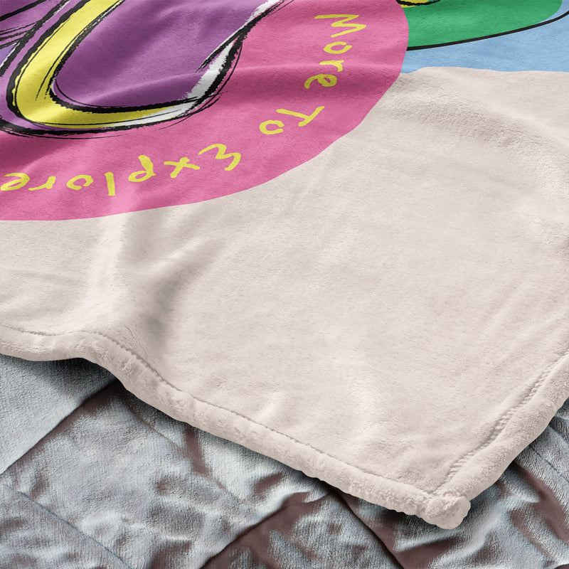 - Featuring Backpack in a fun, hand-drawn design, this vibrant throw is decorated with tropical leaves, flowers, and cheerful phrases like "?HOLA!" and "More to Explore," capturing the excitement of every journey.