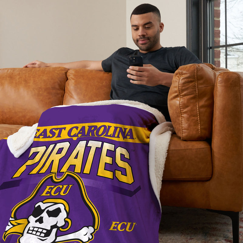 You'll never get cold cheering on your favorite team with this East Carolina Silk Touch Sherpa Throw Blanket. Showcasing the team¡¯s bold logo and signature colors, this throw is designed to make a statement while keeping you comfortable during every game, study group, or lounging session. The luxurious Silk Touch front and soft Sherpa back combine to create an incredibly plush and comfortable blanket that you won¡¯t want to put down.