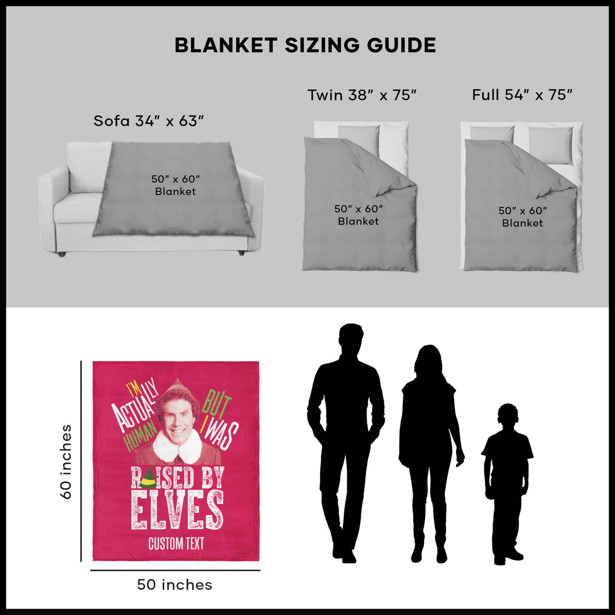 Elevate your holiday decor with the Warner Bros. ¡°Raised By Elves¡± Personalized Silk Touch Throw. Featuring Buddy and the witty phrase ¡°I¡¯m actually human but I was raised by elves,¡± this throw adds a whimsical touch to any room. Whether you¡¯re looking to add a festive accent to your own home or searching for the perfect gift, this throw is sure to delight anyone who loves the charm and magic of ¡°Elf¡± the movie.