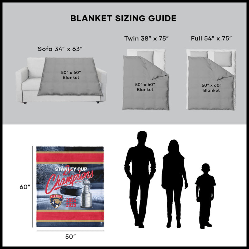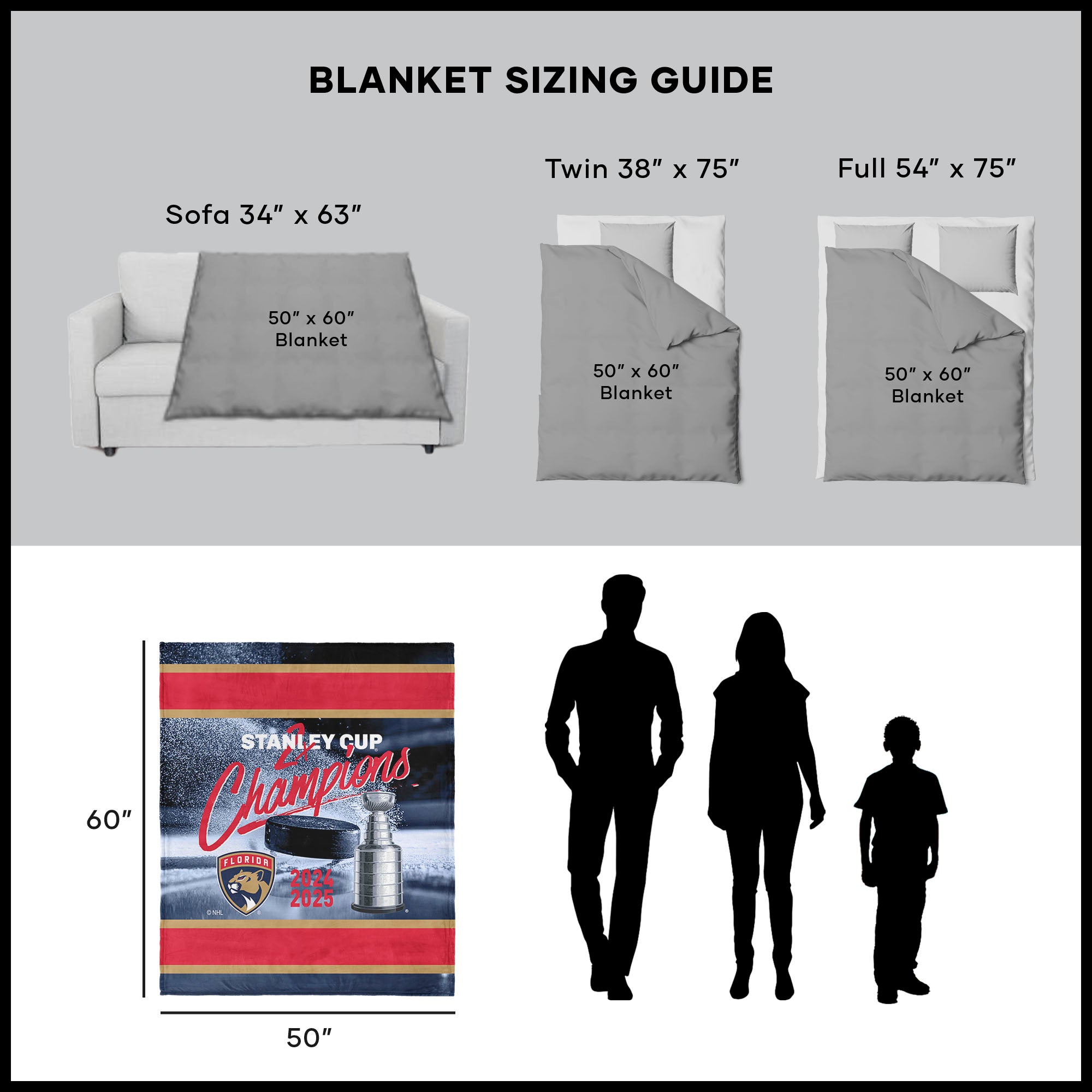 Commemorate a legacy of championship glory with the Florida Panthers NHL Stanley Cup Champions ¡°Multiply¡± Silk Touch Throw Blanket. Designed to honor multiple Stanley Cup victories, this standout throw features dynamic artwork centered around the iconic Stanley Cup trophy and bold ¡°Champions¡± script. With team logo and championship years woven into the layout, every detail pays tribute to unforgettable triumphs. A dramatic ice-rink backdrop and team colors bring the celebration to life, making it a powerful keepsake for fans who¡¯ve stood by through every winning moment. Made with premium Silk Touch fabric, this blanket offers a luxuriously soft texture that¡¯s perfect for everyday comfort. Whether you¡¯re curled up watching highlights, adding a layer of warmth on a chilly night, or decorating your fan cave, the plush material and high-quality finish provide both durability and style. The generous size makes it ideal for couches, beds, or game-day seating, while the vibrant imagery ensures your championship pride is always on display. Great as a personal collectible or a gift for any loyal fan, the Stanley Cup Champions ¡°Multiply¡± Throw Blanket is a bold way to relive your team¡¯s greatest accomplishments. It captures the energy of the win and transforms it into a practical piece of fandom. Every glance reminds you of the grit, passion, and unforgettable moments that built a winning legacy.