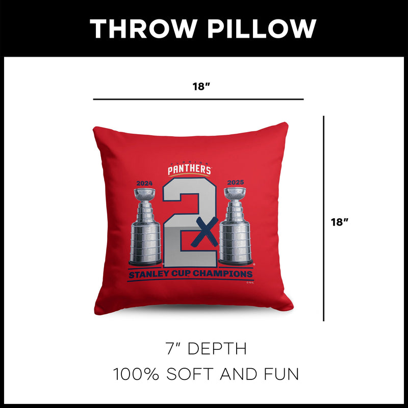 Make a bold statement in your fan space with the Florida Panthers NHL Stanley Cup Champions ¡°Stake¡± Throw Pillow, designed to honor a team¡¯s title legacy with clean, graphic impact. Featuring the Stanley Cup trophy, the championship years, and a bold layout anchored by the ¡°Stanley Cup Champions¡± banner and official team name, the design comes together in vivid team colors for maximum pride and presence. Crafted with a luxuriously soft, plush feel, the pillow provides just the right mix of comfort and support for everyday lounging or game-day excitement. Perfect for your couch, favorite chair, or fan cave, it brings warmth and personality to any room. The high-resolution printed design is fade-resistant and holds its detail over time, so you can count on it to maintain its bold look season after season. Whether you¡¯re sitting back to rewatch championship highlights or simply want to add a team-first finishing touch to your home d¨¦cor, it¡¯s built to perform and designed to impress. Highlight your love for the game and the Hurricanes¡¯ championship moments with a throw pillow that combines premium quality, iconic style, and undeniable fan spirit. Whether you¡¯re building out a hockey-themed room, looking for the perfect game-day companion, or shopping for a thoughtful gift, the ¡°Stake¡± Throw Pillow delivers both comfort and legacy. It¡¯s more than just an accessory¡ªit¡¯s a reminder of every hard-fought victory and every reason you cheer for Florida.
