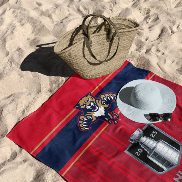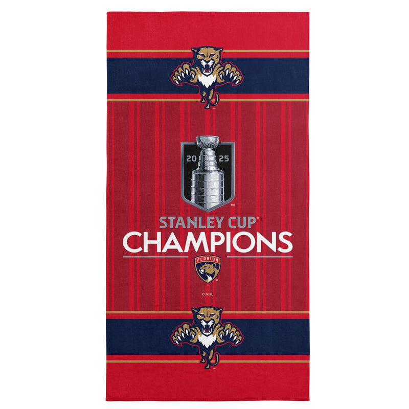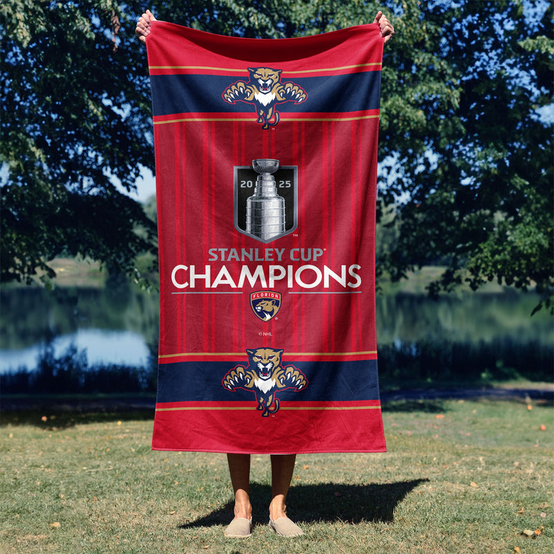 Show off championship pride at the pool, beach, or rink-side with the Florida Panthers NHL Stanley Cup Champions ¡°Unify¡± Beach Towel, a bold and functional tribute to a season of unforgettable triumph. Featuring the Stanley Cup trophy, bold ¡°Stanley Cup Champions¡± text, and team logo, the design is accented by striking vertical stripes, dual team graphics, and bold team colors from top to bottom for a dynamic, unified look that commands attention. Crafted with both comfort and performance in mind, this beach towel is made from soft, quick-drying, and highly absorbent material that¡¯s ideal for drying off after a swim, laying out under the sun, or wrapping up after a workout or on-the-go adventure. Generously sized to provide full-body coverage, it¡¯s also lightweight and folds easily, making it a perfect companion for summer vacations, gym days, road trips, or afternoons by the rink. Whether you¡¯re catching rays, cooling down, or gearing up for a day on the move, this towel keeps your team pride front and center in any setting. Stand out wherever you go with a beach towel that blends championship heritage, everyday practicality, and bold team spirit. Whether you¡¯re surprising a fellow Hurricanes fan or expanding your own collection of Stanley Cup memorabilia, the ¡°Unify¡± Beach Towel is a winning choice. It¡¯s more than just a towel¡ªit¡¯s a portable symbol of dedication, passion, and a hard-earned place at the top of the NHL. Carry the celebration with you all season long and let the world know your team reigns supreme.