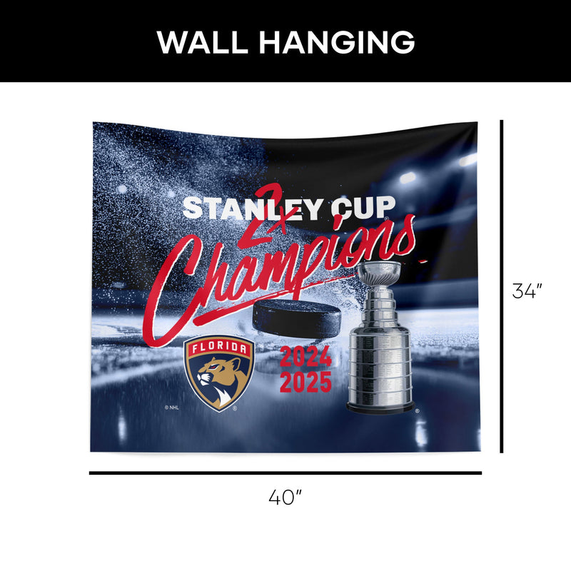 Capture the thrill of a championship season with the Florida Panthers NHL Stanley Cup ¡°Victorious¡± Wall Hanging, designed to spotlight your team¡¯s legacy in stunning, high-contrast style. Featuring the Stanley Cup trophy, bold ¡°Champions¡± script layered over an action-packed rink scene, and team logo and championship years, this piece explodes with energy. A burst of ice spray and spotlight lighting sets the stage for a dramatic centerpiece that instantly commands attention. Made from durable fabric and ready to hang, it¡¯s perfect for fan caves, home offices, dorms, or anywhere you want to showcase team pride. The lightweight material makes installation easy and display effortless, while rich, vivid colors and crisp graphics ensure it stands out season after season. Make your wall a reflection of the moments that matter most with a piece that honors your team¡¯s Stanley Cup triumph. Whether you¡¯re a long-time supporter or new to the championship glow, the ¡°Victorious¡± Wall Hanging offers a bold, memorable way to keep the celebration alive year-round.