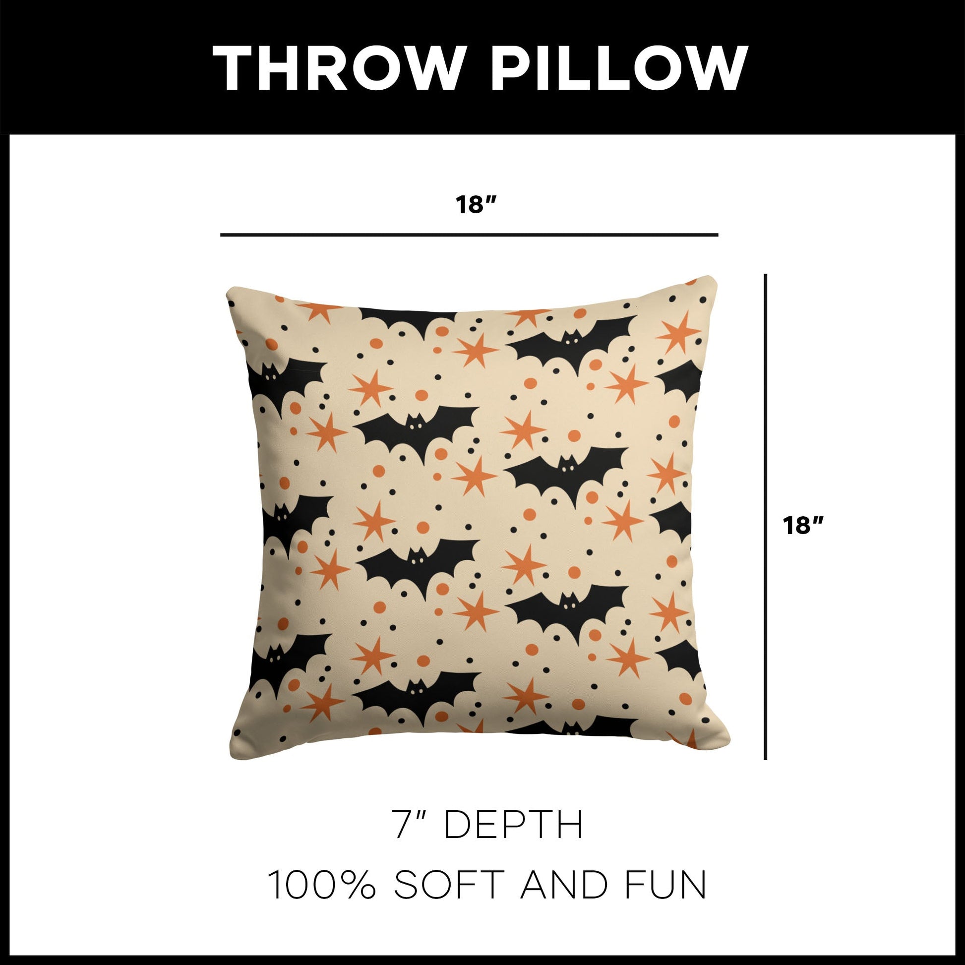 Add a touch of Halloween charm to your space with the Flying Bats Throw Pillow. This decorative pillow showcases a striking pattern of black bats in flight, paired with orange six-pointed stars that pop against the background. The design captures the essence of Halloween, bringing a playful yet spooky vibe to your home. Perfect for the Halloween season or any time you want to add a bit of spooky fun, the Flying Bats Throw Pillow is a great way to enhance your d¨¦cor. Place it on your sofa, bed, or accent chair to create a cozy, haunted ambiance that¡¯s both comfortable and stylish.