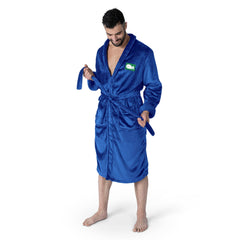 Wrap yourself in team spirit with the Hartford Whalers "Snipe" Silk Touch Robe. Made in a vibrant royal blue, it features the iconic Whalers logo proudly displayed on a chest patch, letting you represent your team in style and comfort. Two roomy front patch pockets add a practical touch for keeping essentials close. With its combination of comfort, style, and team pride, this Hartford Whalers bathrobe is an essential addition for any fan. Whether it's a game day ritual or an everyday favorite, it's a great way to stay cozy while supporting your team.