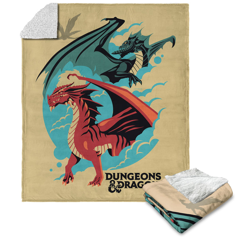 Unleash the fierce spirit of fantasy with the Hasbro Dungeons & Dragons "Red Dragon" Silk Touch Sherpa Throw Blanket, featuring a stunning illustration of a fearsome red dragon alongside a vibrant green dragon. This dynamic design captures the essence of epic battles and legendary quests, showcasing the majesty and power of these iconic creatures. Perfect for tabletop enthusiasts, this throw blanket serves as a striking statement piece in any gaming environment. Whether draped over your couch or wrapped around you during epic campaigns, it enhances the atmosphere of your adventures and inspires creativity. Embrace the world of Dungeons & Dragons with this unique blanket, a fitting tribute to the thrilling tales and unforgettable moments that come with every roll of the dice.