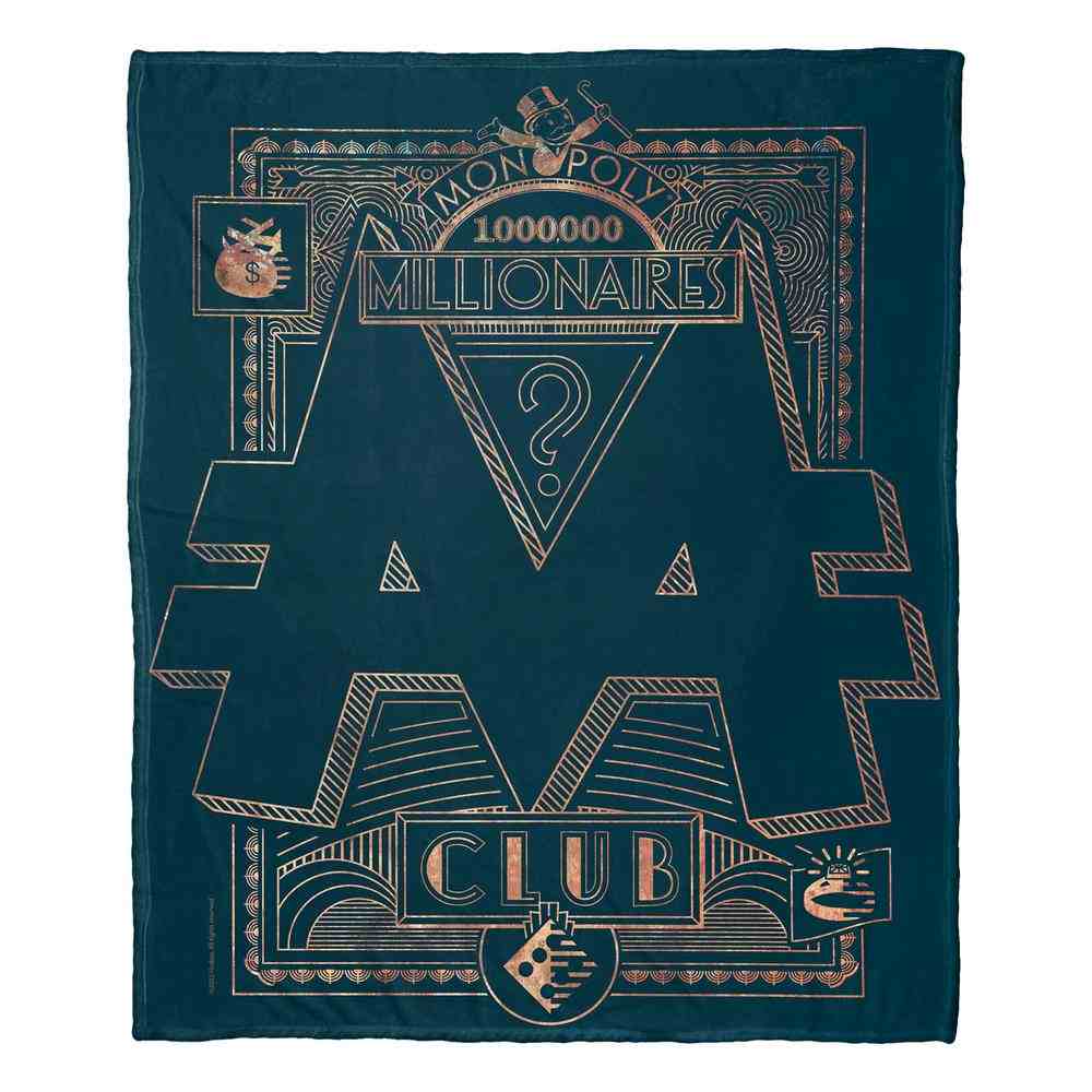 Hasbro Monopoly Millionare Club Silk Touch Throw Blanket 50x60 Inches