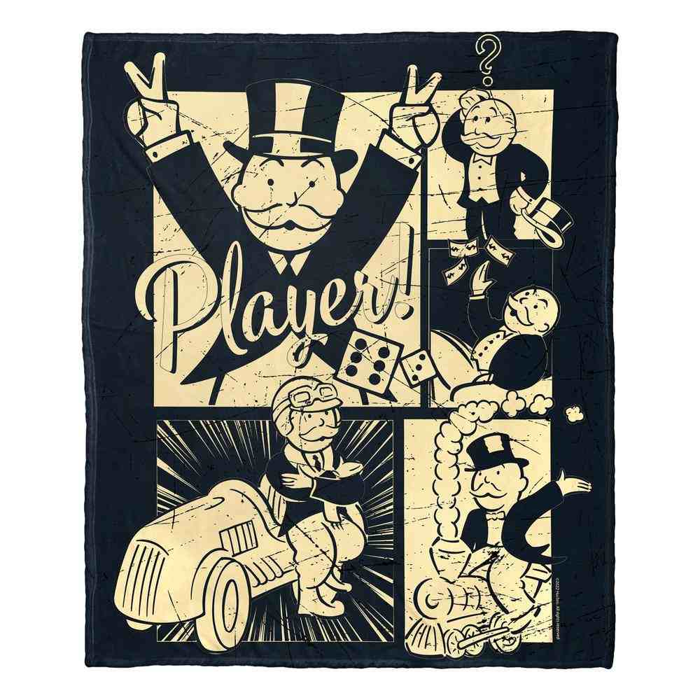 Hasbro Monopoly Player Silk Touch Throw Blanket 50x60 Inches