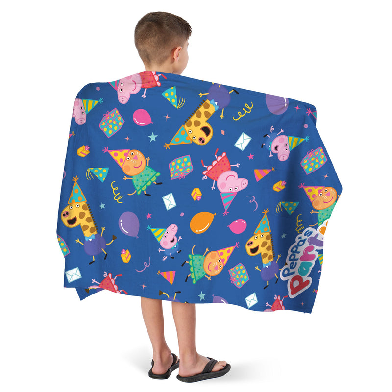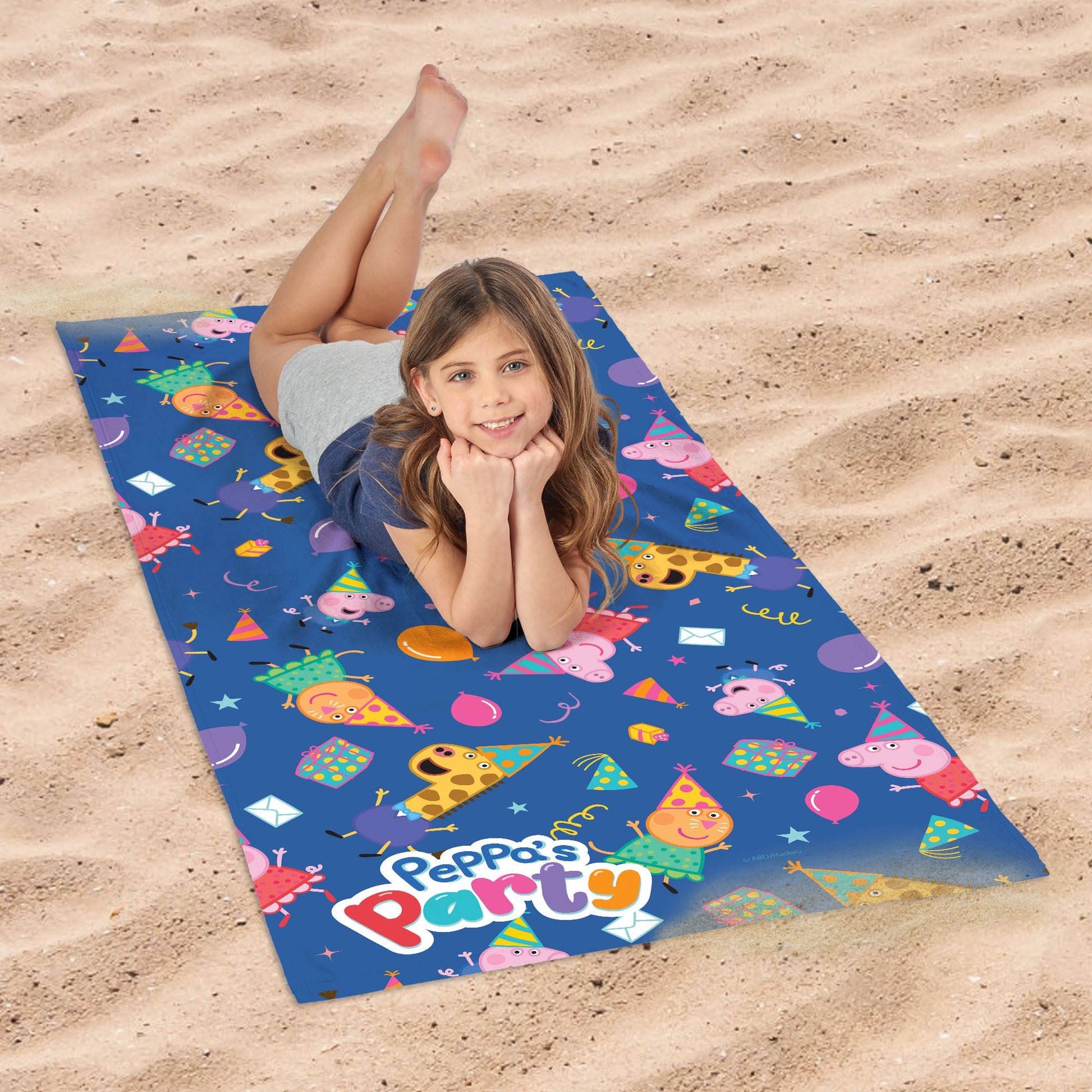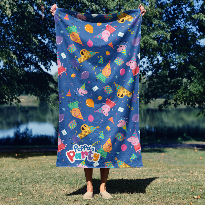 Get ready for a beach party like no other with the Peppa ¡°Party Pattern¡± Beach Towel! Peppa Pig is all dressed up in her party best, and she¡¯s brought along all her friends for a day of fun in the sun. The towel is splashed with vibrant party images, from balloons to confetti, making every trip to the beach or pool a celebration. Whether you¡¯re soaking up the sun or drying off after a swim, this towel adds a splash of joy to your day. The soft, absorbent material is perfect for wrapping up after a dip, and the playful design is sure to make you smile. Peppa and her pals are ready to bring the party vibes wherever you go, turning every moment into a festive occasion.