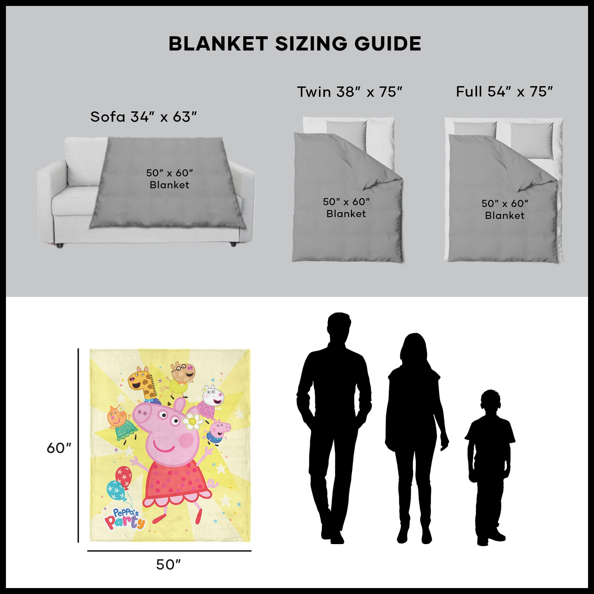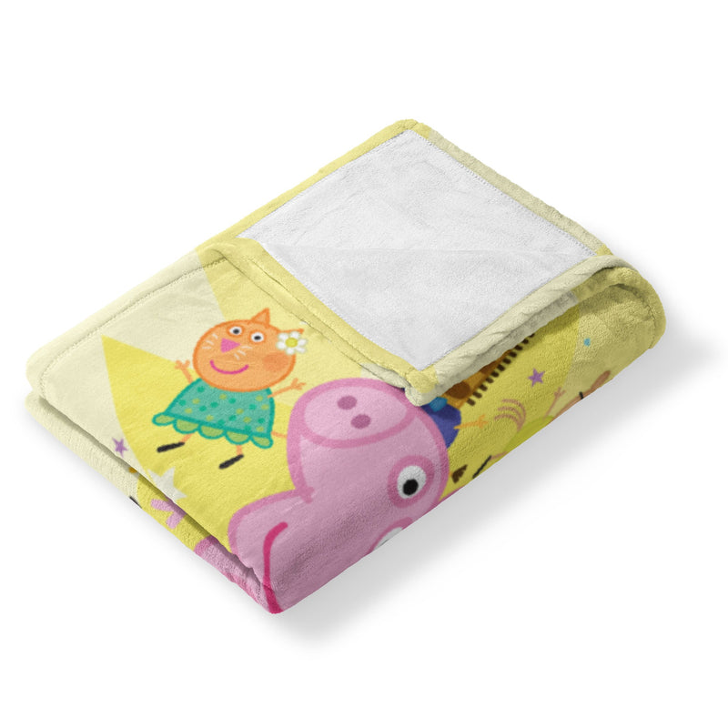 Get ready for a party with Peppa Pig and her friends! The Peppa ¡°Friends Party¡± Silk Touch Throw Blanket is your ticket to a celebration filled with laughter, fun, and friendship. Peppa is dressed in her cutest party dress, and she¡¯s joined by all her favorite pals, ready to dance the day away. The vibrant colors and joyful scene will make you feel like you¡¯re right there at the party with them! The soft and silky texture is perfect for snuggling up while watching your favorite Peppa Pig episodes or just daydreaming about your own exciting adventures with Peppa and her friends. Perfect for Peppa fans of all ages, this blanket will quickly become a favorite for sleepovers, movie nights, or just a little extra comfort on a chilly day.