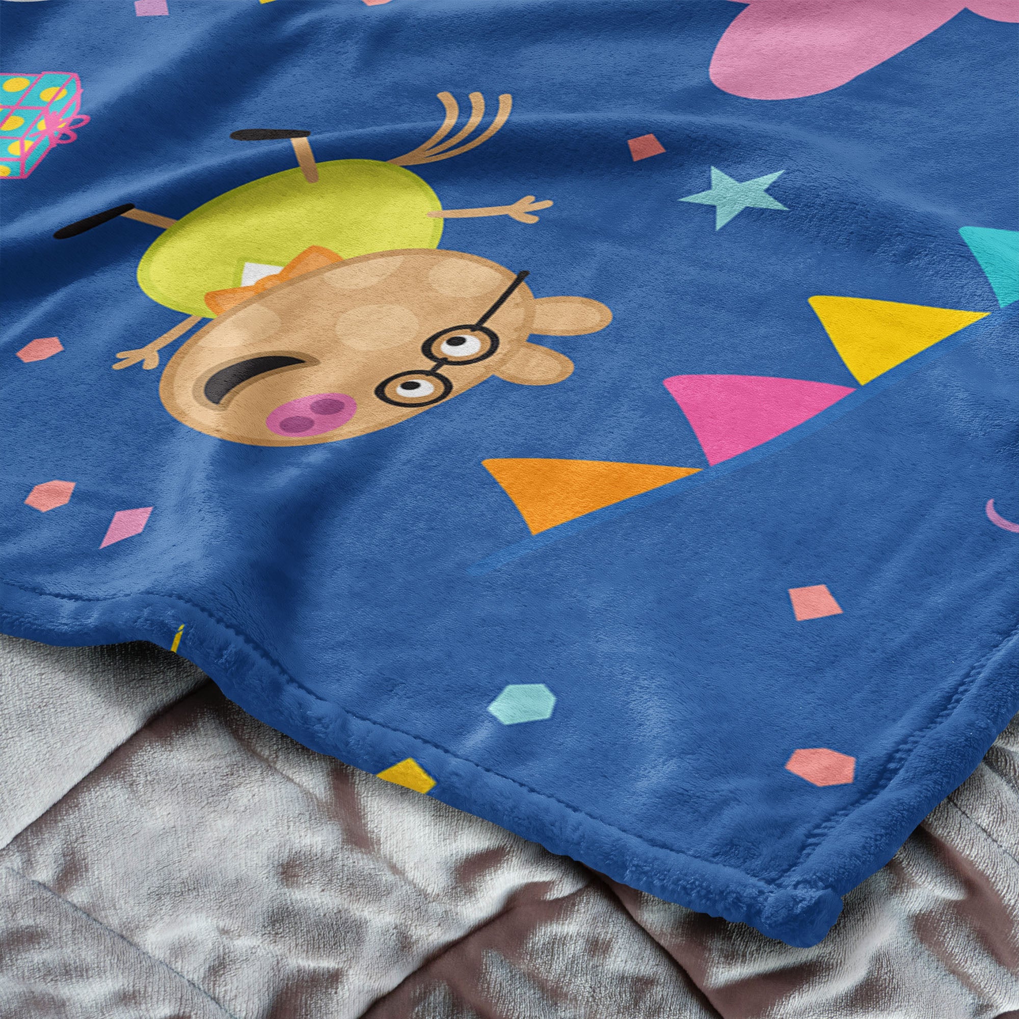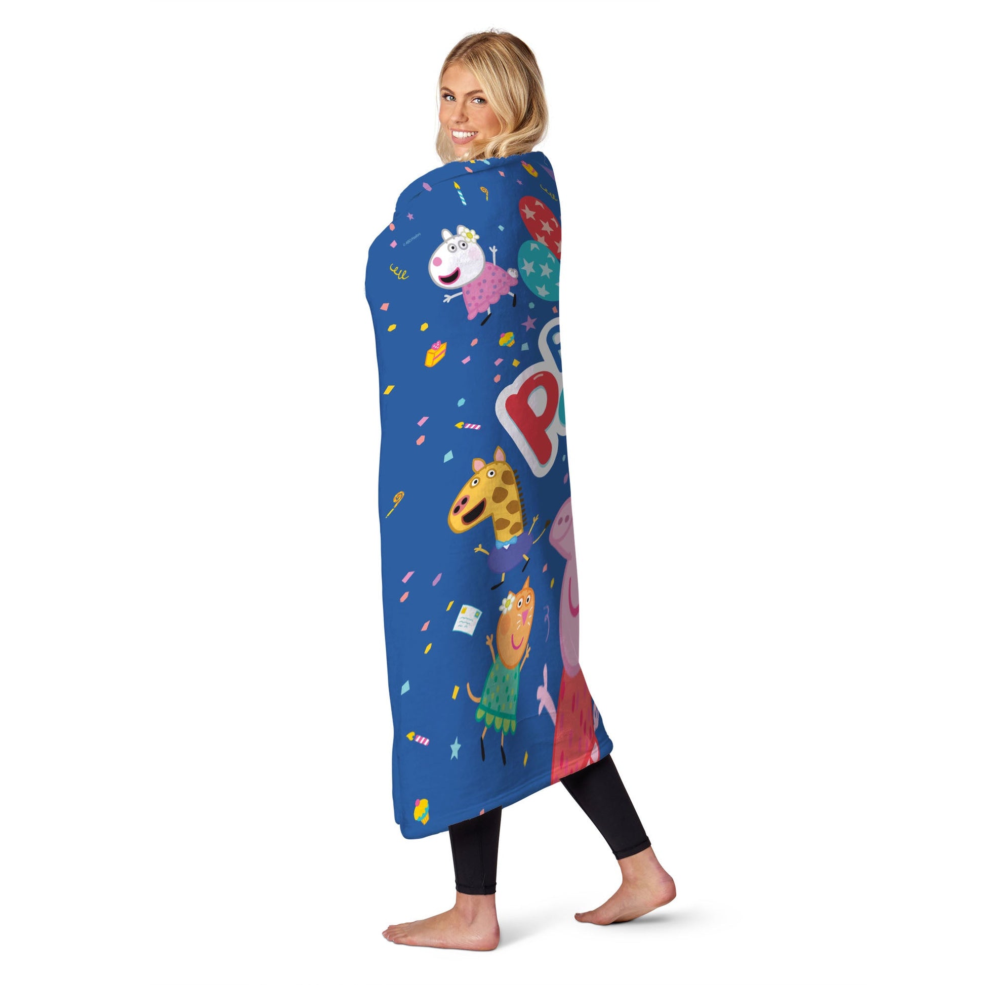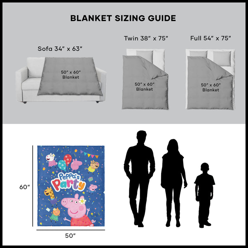It¡¯s time to celebrate with Peppa Pig and her friends! The Peppa ¡°Peppa¡¯s Party¡± Silk Touch Throw Blanket is bursting with joy, just like the best parties. Peppa is dressed in her prettiest party dress, surrounded by all her favorite friends on a backdrop filled with balloons, confetti, and other fun party images. It¡¯s a perfect party scene that¡¯s ready to bring a smile to your face. With every snuggle, you¡¯ll feel like you¡¯re right there at the party, dancing and giggling with Peppa and her pals. Whether it¡¯s for sleepovers, movie marathons, or just a bit of cozy fun, this blanket is sure to become your go-to for comfort and cheer