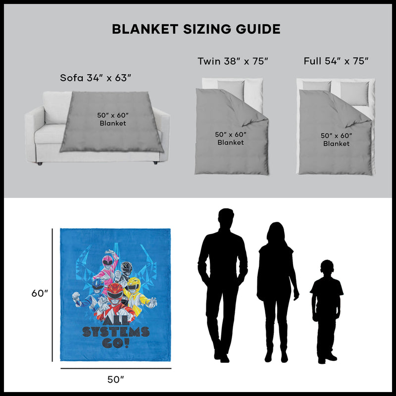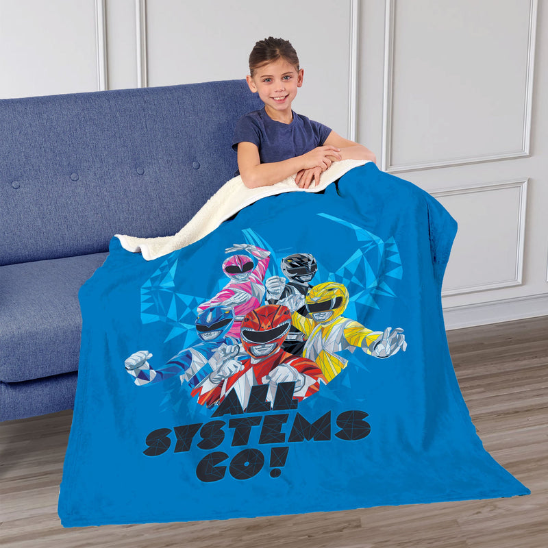 Power up your space with this Hasbro Power Rangers ¡°All Systems Go¡± Silk Touch Sherpa Throw Blanket. Featuring the iconic Power Rangers in dynamic action poses, this throw brings the energy and excitement of the legendary team straight into your room. The vibrant blue background adds a bold touch, making the characters stand out in their heroic stances. Soft and comfortable, this throw is perfect for lounging, watching your favorite episodes, or adding a fun, energetic flair to your decor. Bring home this action-packed piece and immerse yourself in the world of the Power Rangers.
