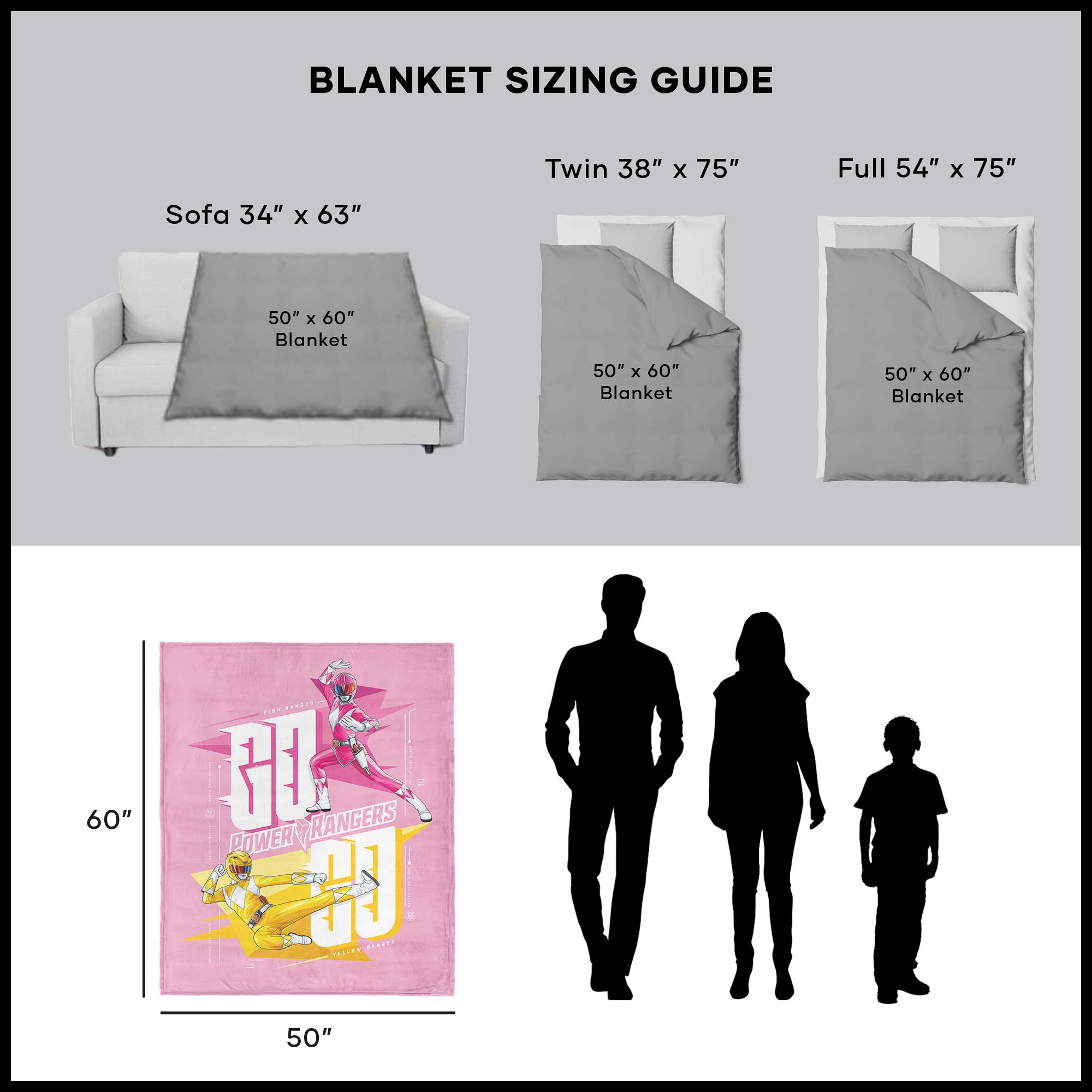 Add a burst of color and action to your space with the Hasbro Power Rangers ¡°Pink And Yellow¡± Silk Touch Throw Blanket. Featuring the fearless Pink and Yellow Power Rangers in dynamic action poses, this blanket highlights their strength, agility, and courage. Set against a vibrant pink background, the design captures both Rangers in their signature colors, ready to take on any challenge. Soft and comfortable, this throw adds both style and function to any room. Perfect for Power Rangers fans, it¡¯s great for lounging, movie nights, or adding a fun pop of color to your decor. Let the Pink and Yellow Power Rangers inspire your space with their legendary energy.