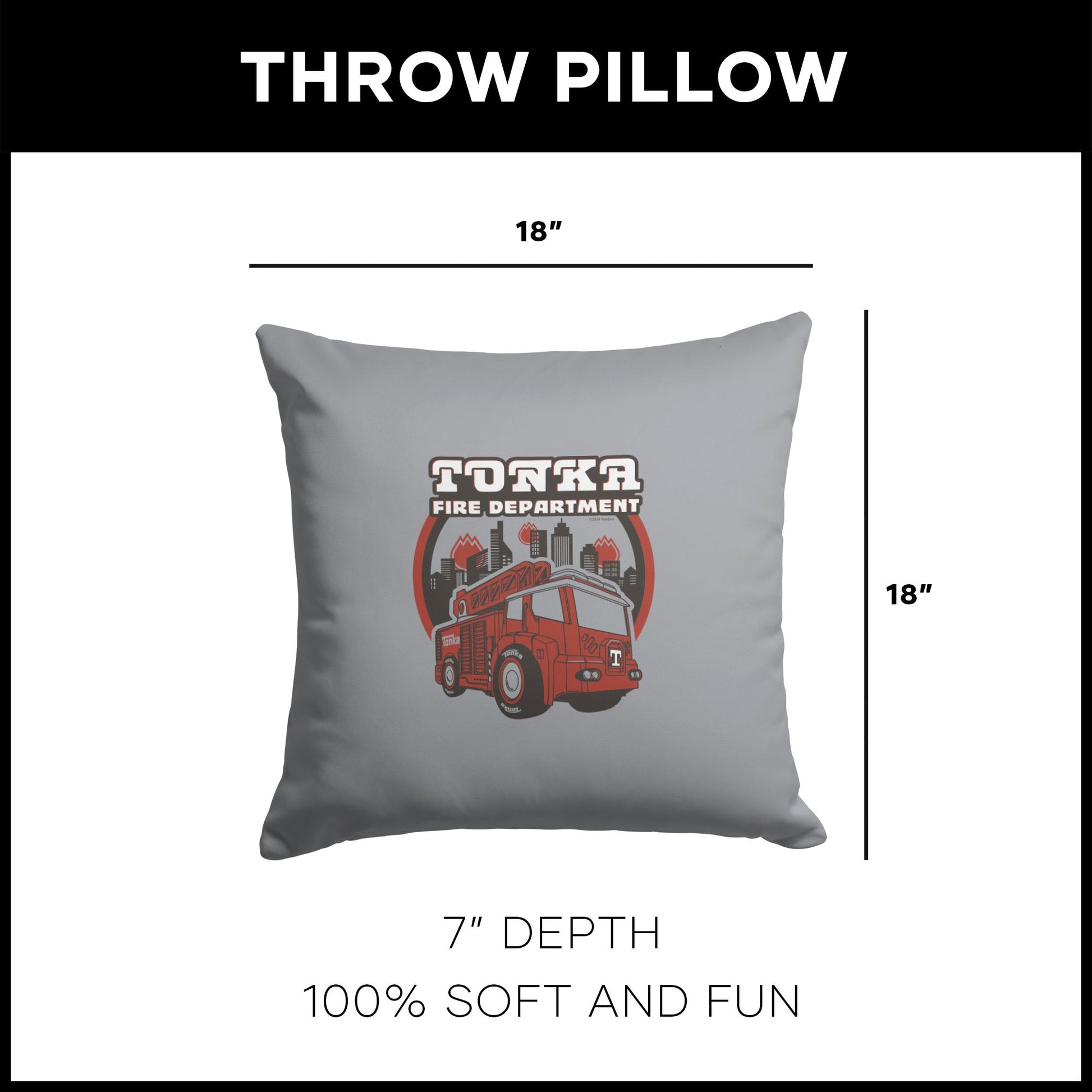 Hasbro Tonka Tonka Fire Dept Throw Pillow 18X18 Inches