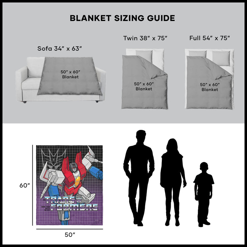 Unleash the ambition of Starscream with the Hasbro Transformers ¡°G1 Grid Starscream¡± Silk Touch Throw Blanket. Featuring a striking illustration of Starscream against a retro grid-lined background, this throw embodies the cunning and charisma of the infamous Decepticon. Crafted with ultra-soft silk touch fabric, it offers unparalleled comfort alongside its bold, vibrant design. Whether draped over your favorite chair or used during a Transformers binge-watch session, this blanket adds a dynamic touch to any setting.
