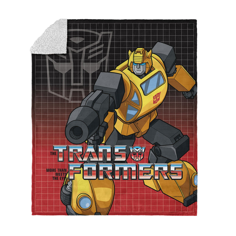 Hasbro Transformers G1 Grid Bumblebee Silk Touch Sherpa Throw Blanket 50X60 Inches