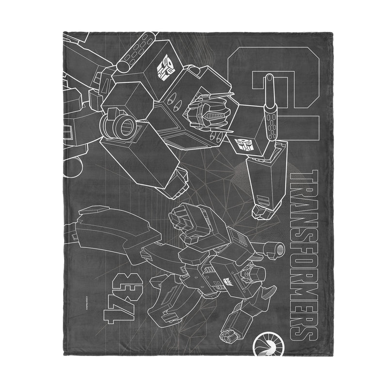 Relive the origins of the Transformers saga with the Hasbro Transformers ¡°G1 Optimus Prime and Megatron¡± Silk Touch Throw Blanket. Showcasing a representative concept drawing of the first designs of Optimus Prime and Megatron, this blanket is a nostalgic nod to the iconic beginnings of the Autobots and Decepticons. Honor the legendary rivalry that started it all with this timeless collectible. Whether displayed as part of your Transformers collection or enjoyed for its luxurious feel, this blanket captures the essence of the franchise¡¯s enduring legacy.