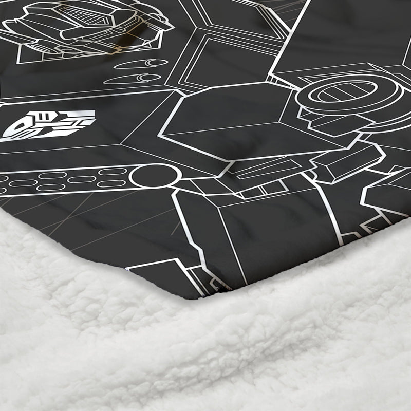 Embrace the epic clash of heroes and villains with the Hasbro Transformers ¡°One Shall Stand, One Shall Fall¡± Silk Touch Sherpa Throw Blanket. Featuring a repeating pattern of Transformers logos and the iconic phrase, this blanket is a bold tribute to the legendary battles that have defined the franchise. Made from luxurious silk touch fabric, this blanket combines comfort and style in perfect harmony. Its eye-catching design and soft texture make it ideal for curling up during movie marathons or showcasing your Transformers fandom in any space.