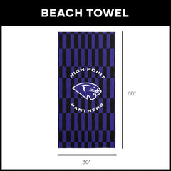 Elevate your game day experience with this High Point University beach towel proudly displaying your team¡¯s logo and name with vibrant colors. Ideal for beach outings or poolside fun, this towel combines team spirit with a tropical flair. Embrace the sun and sand with this unique and spirited accessory. It makes the perfect gift for the student or alumni in your life or treat yourself to a touch of fandom today.
