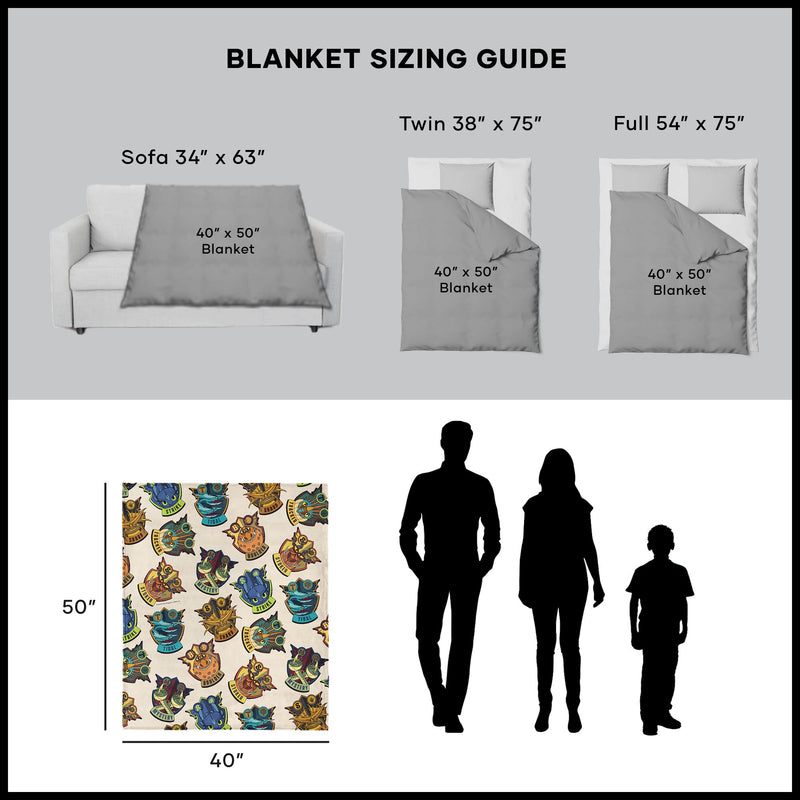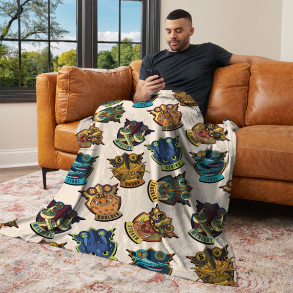 Celebrate every dragon class with the Universal How to Train Your Dragon ¡°Dragon Badges¡± Silk Touch Throw Blanket, featuring colorful emblems like Strike, Tidal, Tracker, Mystery, Sharp, Boulder, and Stoker on a soft cream backdrop. Each badge pops with bold lines and vibrant hues, bringing the playful spirit of dragon training into your space while honoring the bond between Vikings and their dragons. Perfect for dreamers, young dragon riders, or longtime fans of the franchise, this ultra-soft blanket adds warmth and comfort to movie nights, bedtime, or any moment you want to curl up and let your imagination soar.