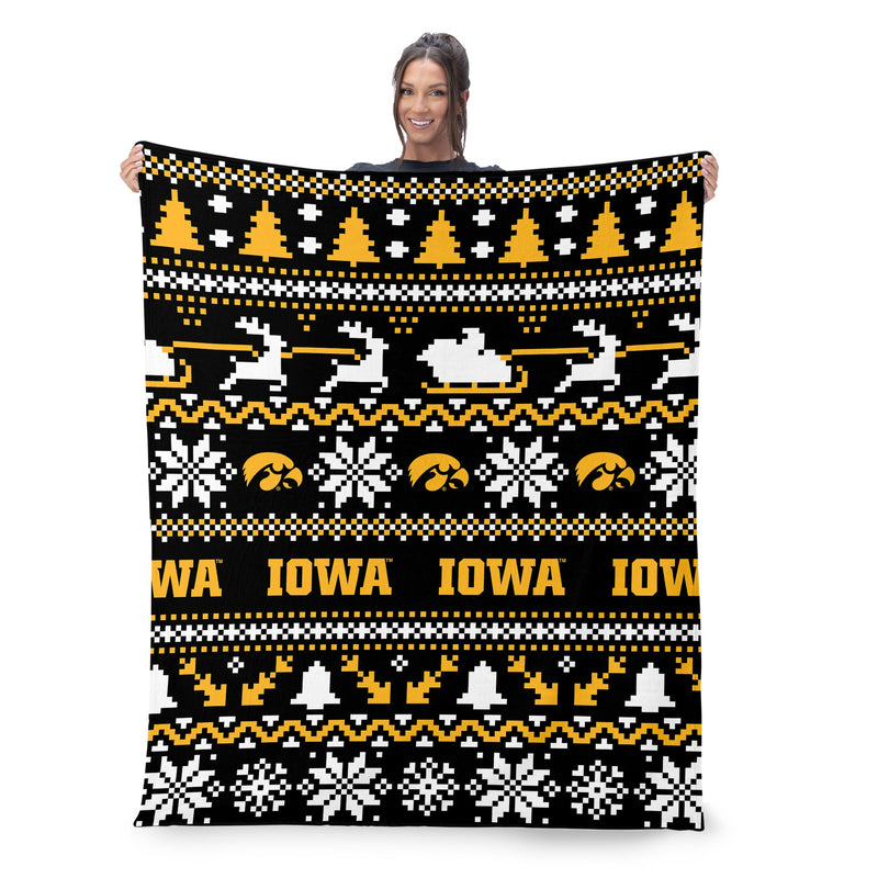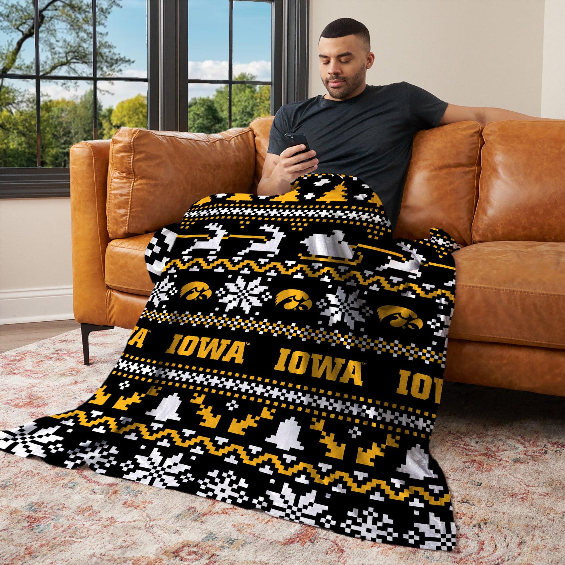 Iowa Hawkeyes NCAA Xmas Time Silk Touch Throw Blanket 50X60 Inches