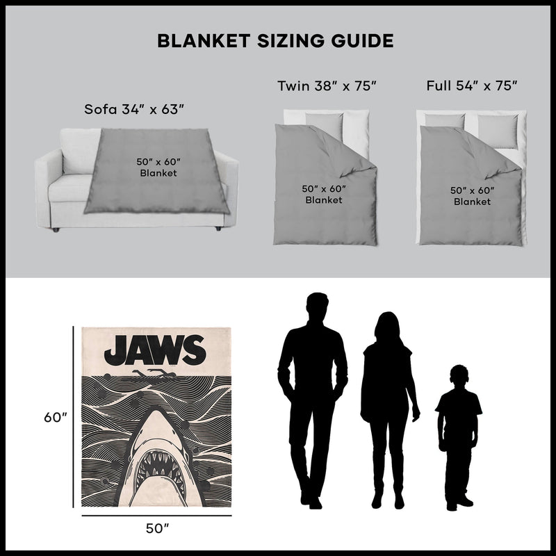 Make a bold statement on movie night with the Universal Jaws ¡°Duotone Poster¡± Silk Touch Throw Blanket, featuring a dramatic black-and-cream design of the iconic shark and swimmer in a striking wave pattern. Made with ultra-soft, velvety fabric, it brings graphic style and cozy comfort to any fan¡¯s space. Fans of the legendary thriller will love how the duotone artwork gives a modern twist to a timeless classic. Lightweight yet plush, it¡¯s perfect for draping over a couch, bed, or chair for an instant pop of suspenseful character. Ideal for gifting or keeping all to yourself, this blanket lets you wrap up in comfort while paying tribute to one of cinema¡¯s most unforgettable moments. Snuggle in and relive the chills of Jaws with every cozy night in.