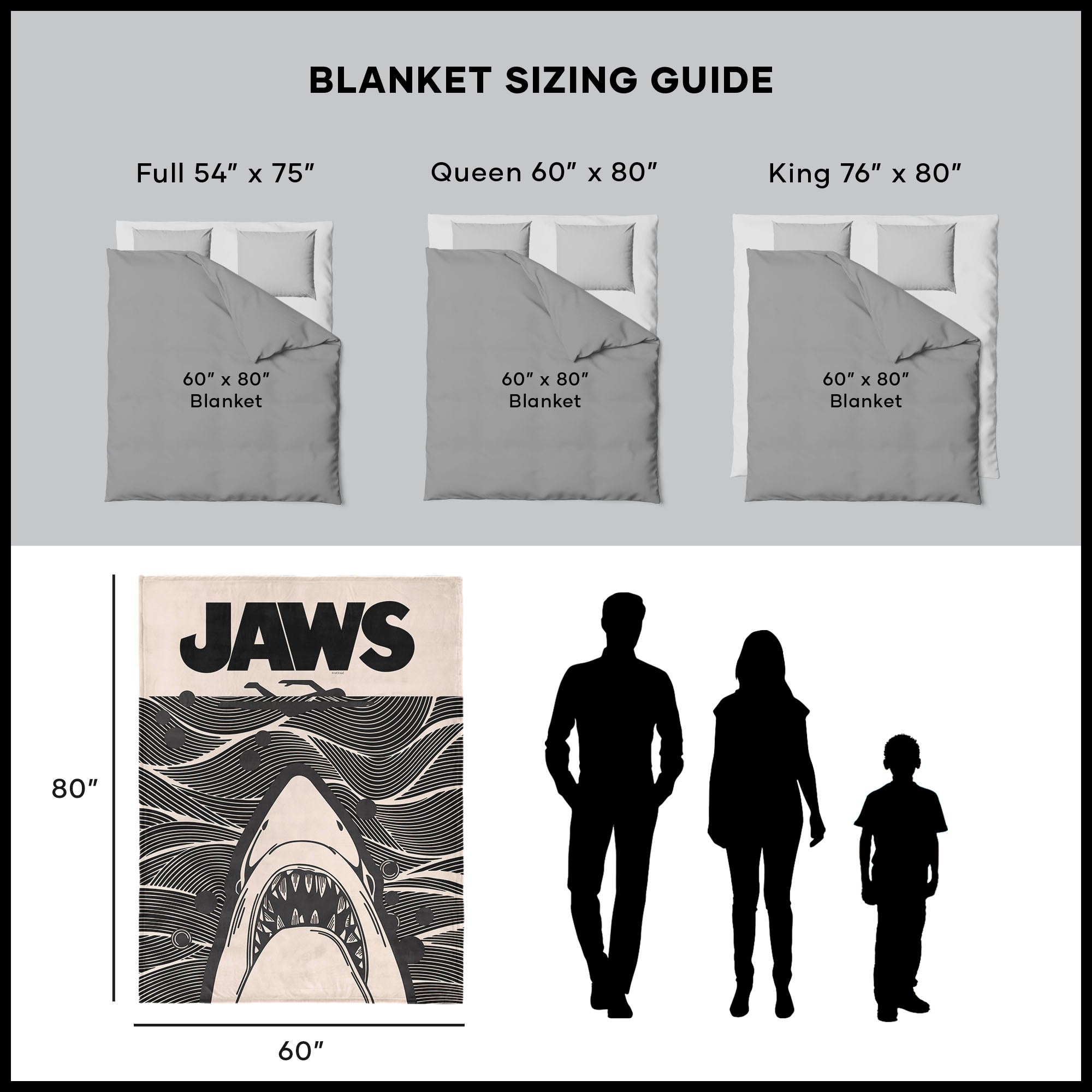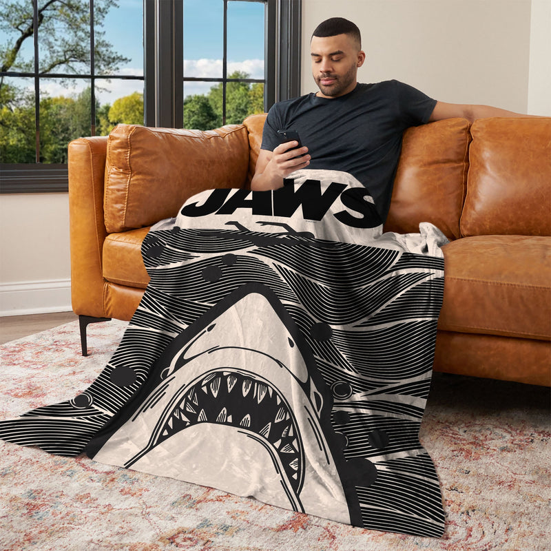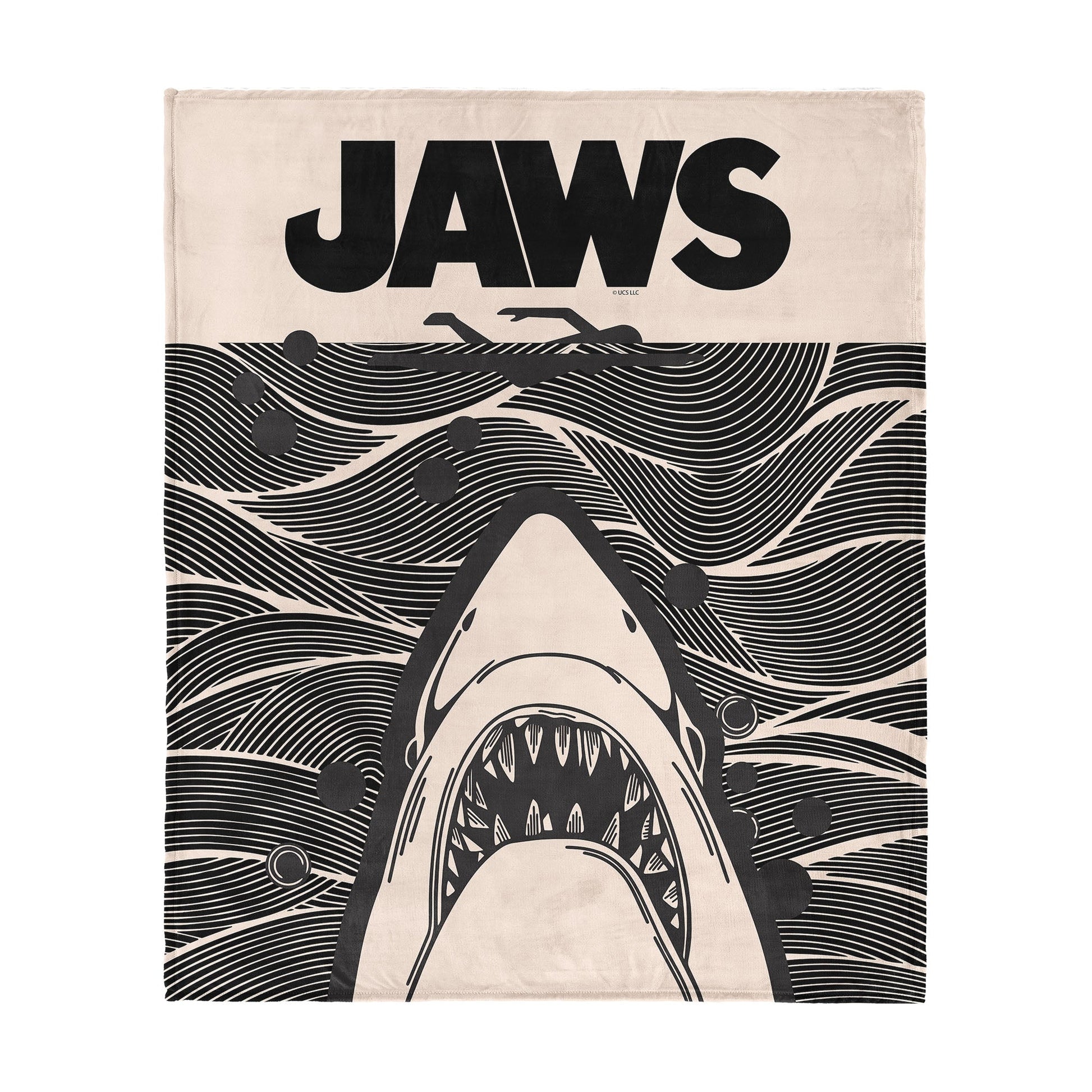 Make a bold statement on movie night with the Universal Jaws ¡°Duotone Poster¡± Silk Touch Throw Blanket, featuring a dramatic black-and-cream design of the iconic shark and swimmer in a striking wave pattern. Made with ultra-soft, velvety fabric, it brings graphic style and cozy comfort to any fan¡¯s space. Fans of the legendary thriller will love how the duotone artwork gives a modern twist to a timeless classic. Lightweight yet plush, it¡¯s perfect for draping over a couch, bed, or chair for an instant pop of suspenseful character. Ideal for gifting or keeping all to yourself, this blanket lets you wrap up in comfort while paying tribute to one of cinema¡¯s most unforgettable moments. Snuggle in and relive the chills of Jaws with every cozy night in.