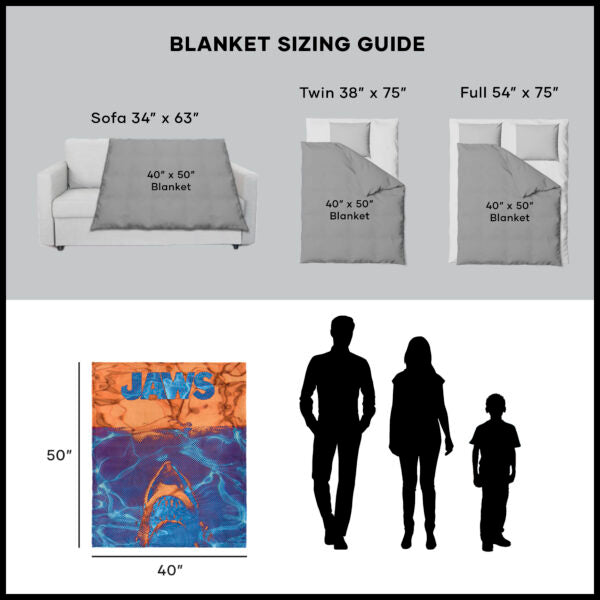Turn up the retro vibes with the Universal Jaws ¡°Neon Poster¡± Silk Touch Throw Blanket, featuring a bold pop-art inspired design with vibrant orange and electric blue tones of the iconic shark scene. Made with ultra-soft, velvety fabric, it¡¯s the perfect way to add eye-catching color and movie nostalgia to your space. Fans of the legendary thriller will love the vintage comic-style look that brings an edgy twist to a timeless classic. Lightweight yet plush, it¡¯s easy to toss over your couch, bed, or favorite chair for a splash of dramatic flair. Perfect for gifting to any Jaws lover or keeping all to yourself, this blanket combines cozy comfort with unmistakable style. Wrap up, stay warm, and relive your favorite suspenseful moments in bright, bold fashion.