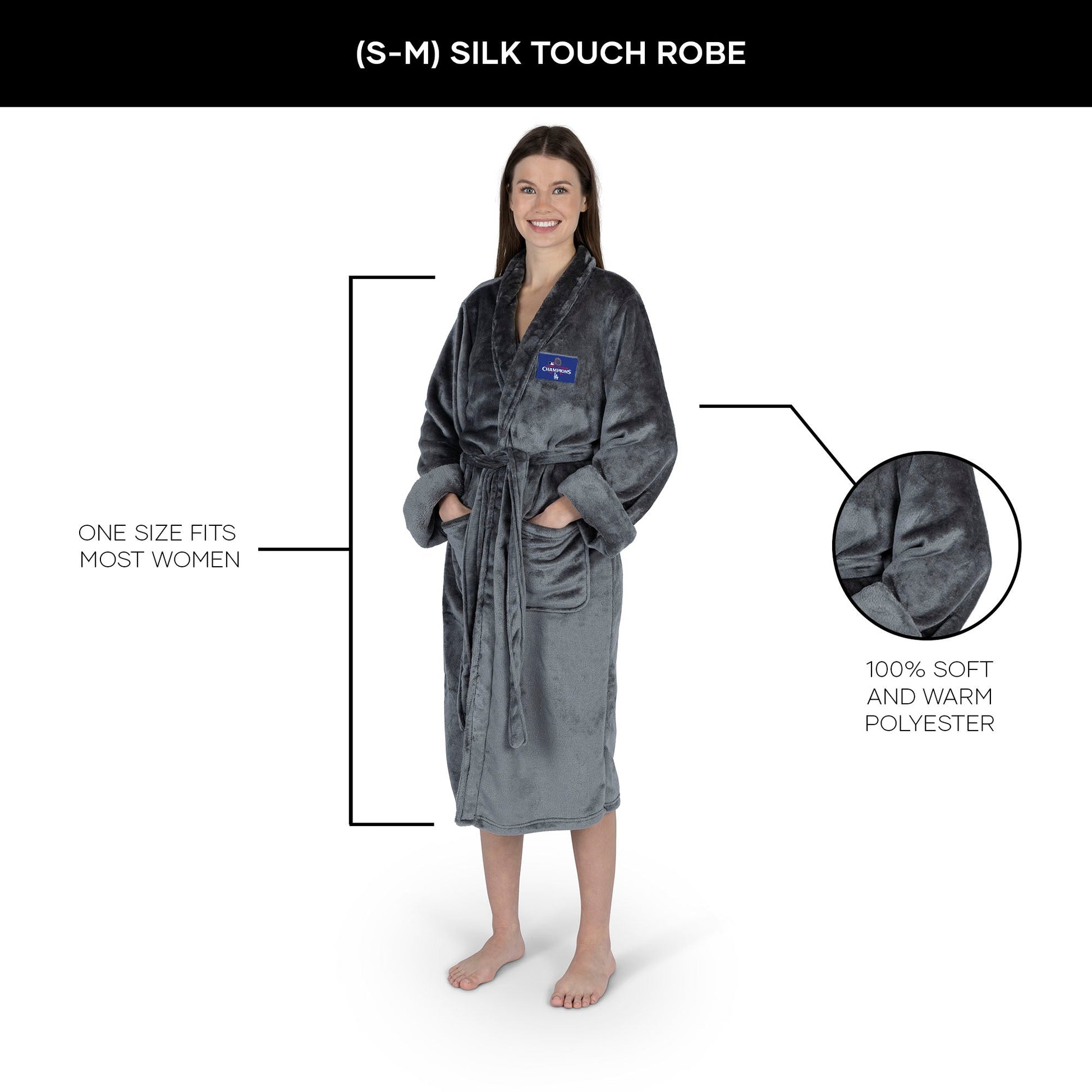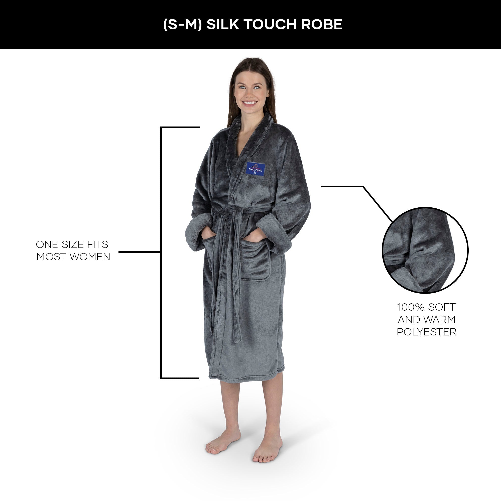 Wrap yourself in luxury with this 2024 MLB World Series Champs Silk Touch Robe, designed for ultimate comfort and style. A sleek patch featuring the 2024 World Series logo adorns the left chest, adding a touch of championship pride to your loungewear. Perfect for relaxing after the big win or just staying cozy at home. Made from ultra-soft silk-touch fabric, this robe feels as good as it looks. With a comfortable fit and a belt to cinch at the waist, it¡¯s crafted for both lounging and showing off your love for the team¡¯s championship run. Whether you¡¯re winding down after a long day or enjoying game-day moments, it provides a touch of elegance.