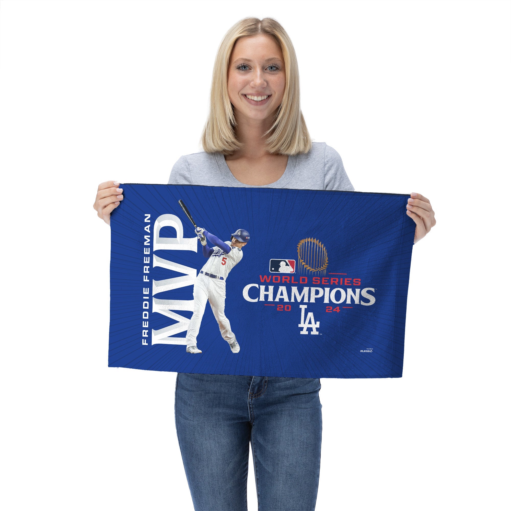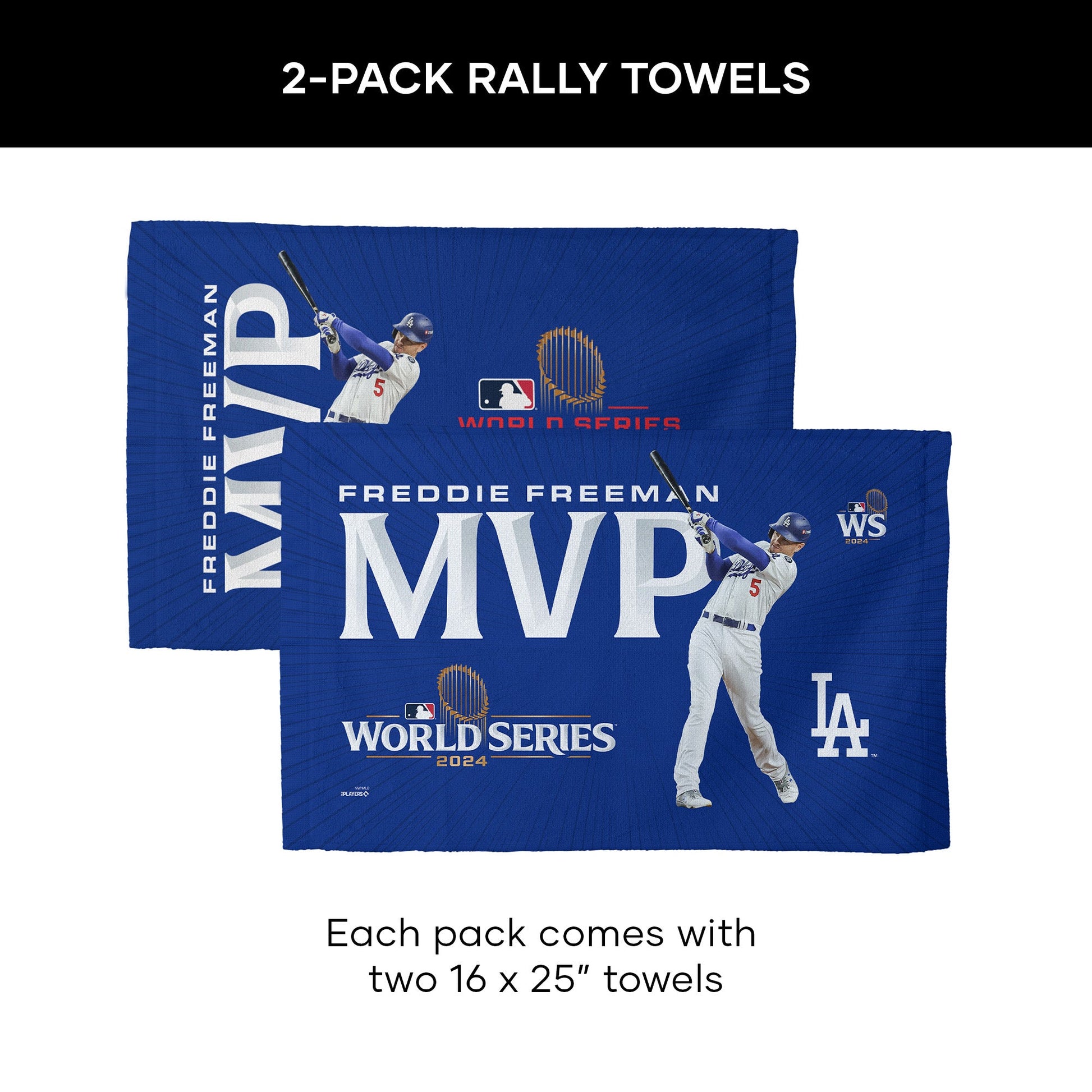 Experience the excitement of Dodgers baseball with this Freddie Freeman World Series MVP Fan Towel 2-Pack, featuring two unique designs that celebrate Freeman¡¯s remarkable talent and impact on the team. Each towel showcases vibrant imagery of Freeman in action, capturing his iconic swing as he helps propel the Dodgers to victory. Crafted from high-quality materials, these towels are perfect for waving at games or displaying as part of your fan collection. Perfect for avid fans or as a gift for loved ones, this 2-pack of fan towels is a must-have for anyone looking to show their support for the Dodgers. Whether at a game, a watch party, or simply cheering from home, these towels will enhance the experience, reminding you of the thrilling moments that define Dodgers baseball and the legacy of Freddie Freeman.