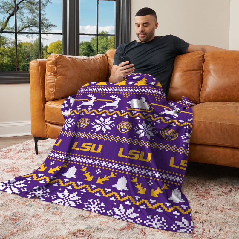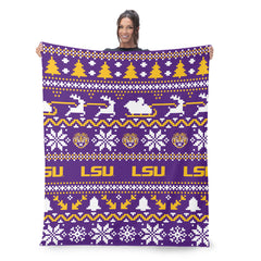 LSU Tigers NCAA Xmas Time Silk Touch Throw Blanket 50X60 Inches