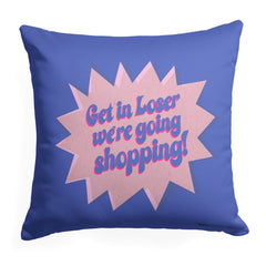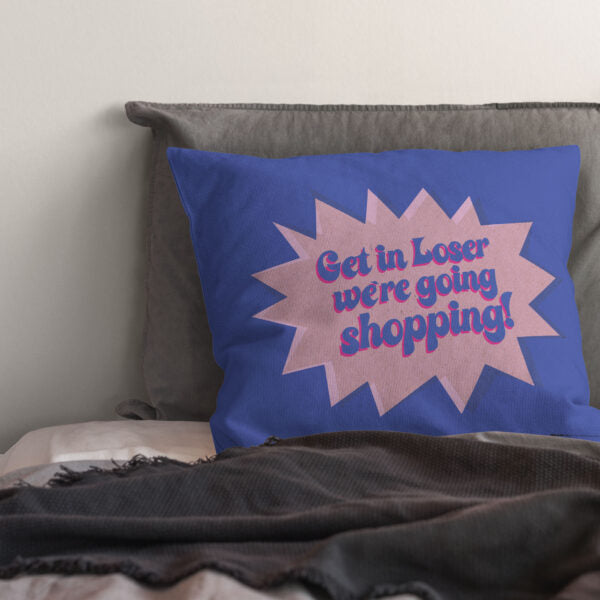 ? Features the words "Get in Loser we're going shopping!" inside a multi point star on a blue background
