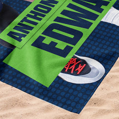 Show off your NBA fandom with this Player Beach Towel, designed to feature your favorite player in action. With their name and team logo proudly displayed, this towel brings the excitement of the court to the beach or poolside. Crafted from soft, absorbent fabric, it ensures comfort and durability while making a bold statement. Whether drying off after a swim or lounging under the sun, this towel offers the perfect way to support your team and add some basketball energy to your day. Perfect for any NBA enthusiast, it's an essential for your next beach or pool outing!