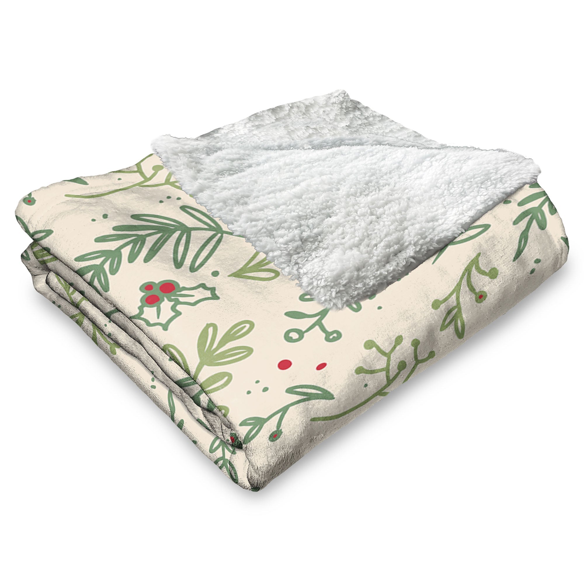 Wrap yourself in holiday comfort with this Mistletoe Silk Touch Sherpa Throw Blanket. Covered in a beautiful repeating pattern of mistletoe branches and leaves, it brings festive charm to any space. The soft, luxurious texture feels like a warm hug on chilly winter nights, perfect for cozying up by the fire or enjoying a movie with loved ones. The classic mistletoe design gives this throw a timeless look, effortlessly matching holiday d¨¦cor. Whether draped over a couch or spread across a bed, it¡¯s a cheerful addition that spreads warmth and joy throughout the season. Enjoy the balance of holiday elegance and everyday comfort with this festive throw.